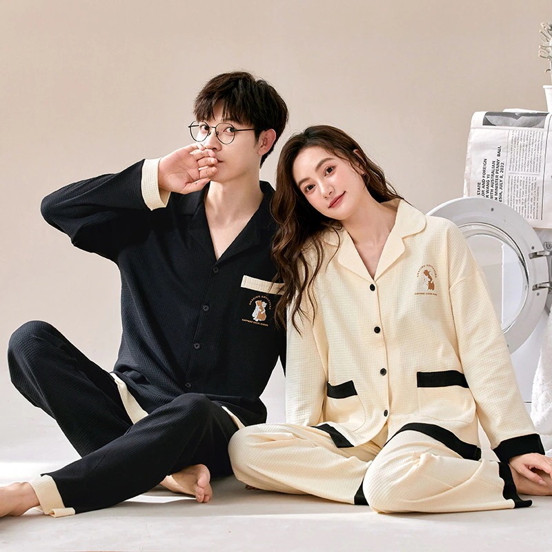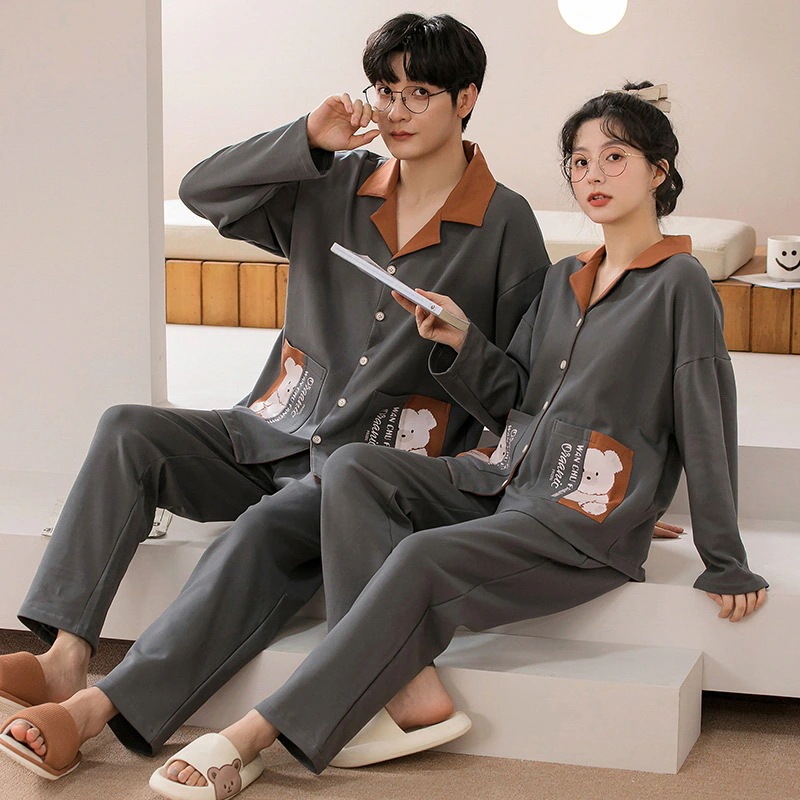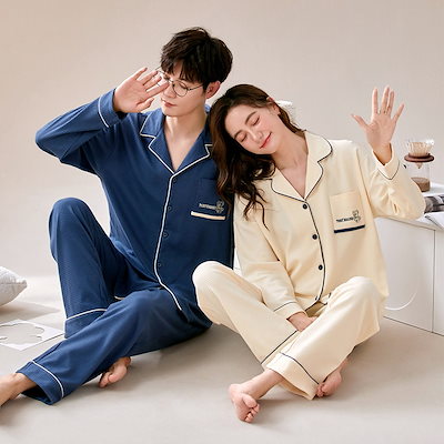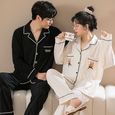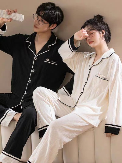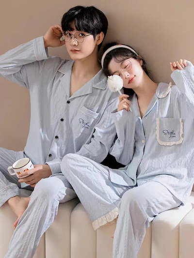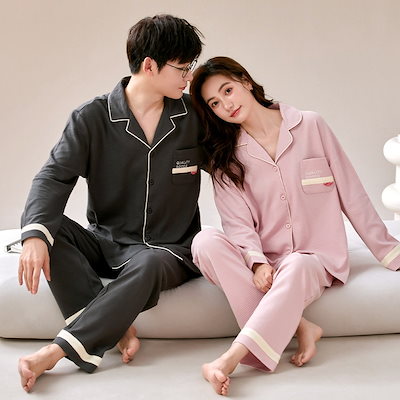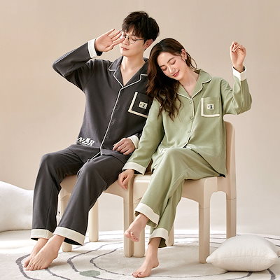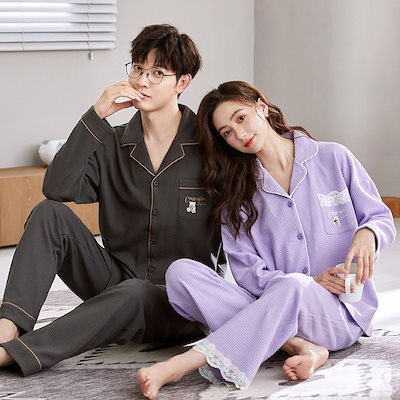 パジャマ カップルペアルック 前開き ルームウェア 春秋冬 ペアパジャマ 長袖 レディース メンズ 部屋着 シンプル 韓国風 大きいサイズ 単品売り
