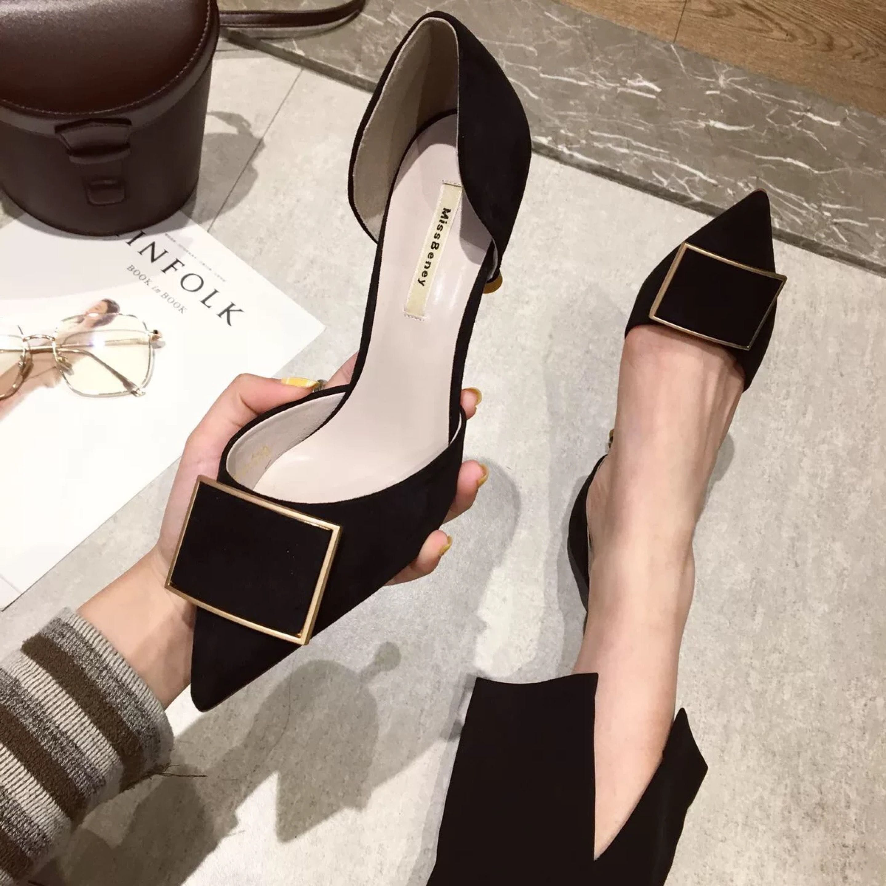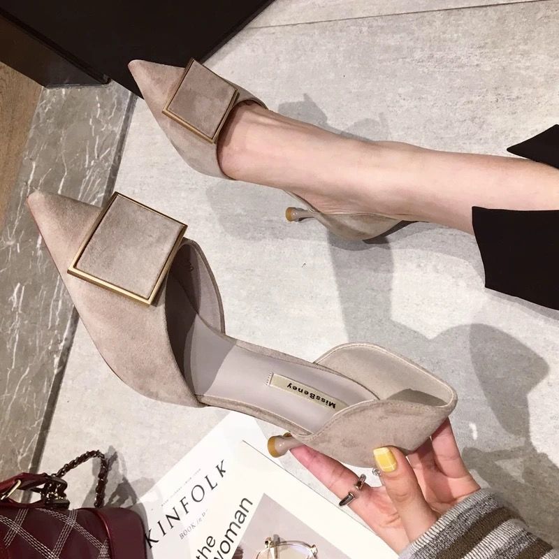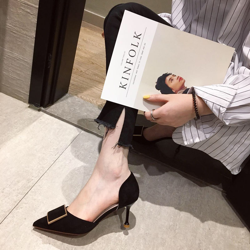 ヒールパンプス レディース 2024夏新型 スクエアボタン ファッション ハイヒールセクシー 細ヒール尖った浅口 中空 シングル シューズ 通勤 韓国