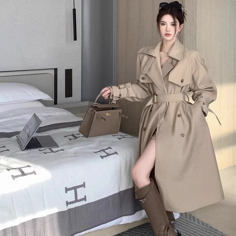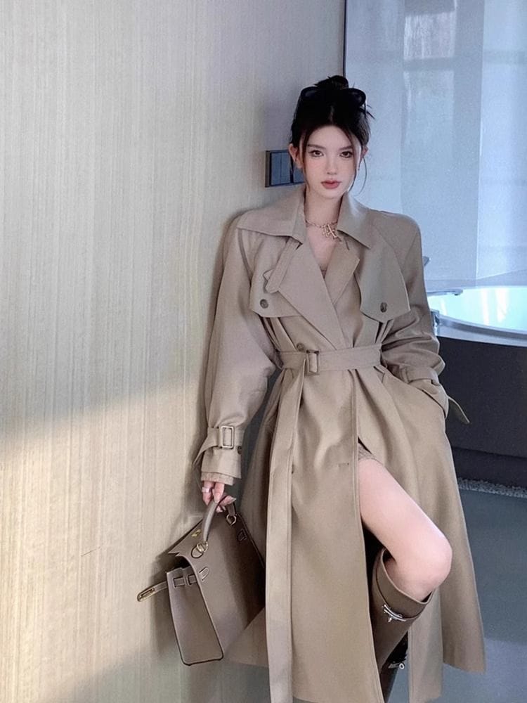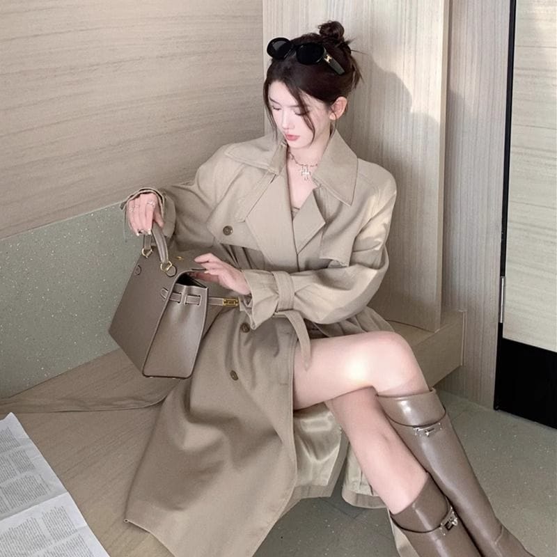 2024春 新作 可愛い 英伦風 トレンチコート アウター 秋 セミロング コート 流行りコート ジャケット ロングコート レディース トップス 大きいサイズ 大人っぽチェスターコ 春トレンチコート