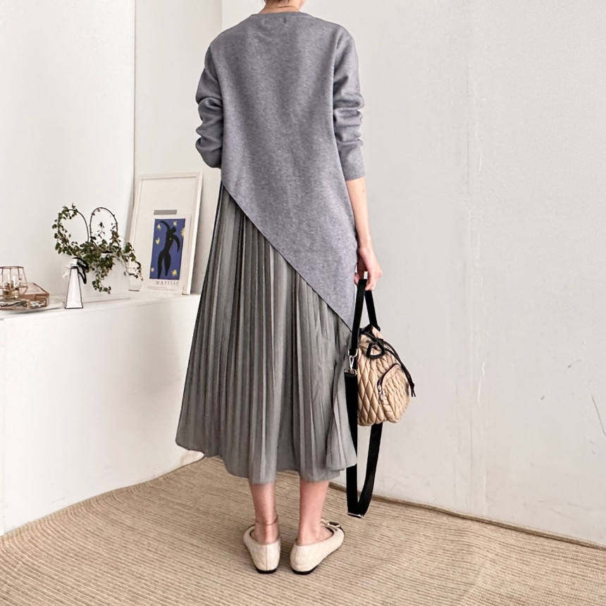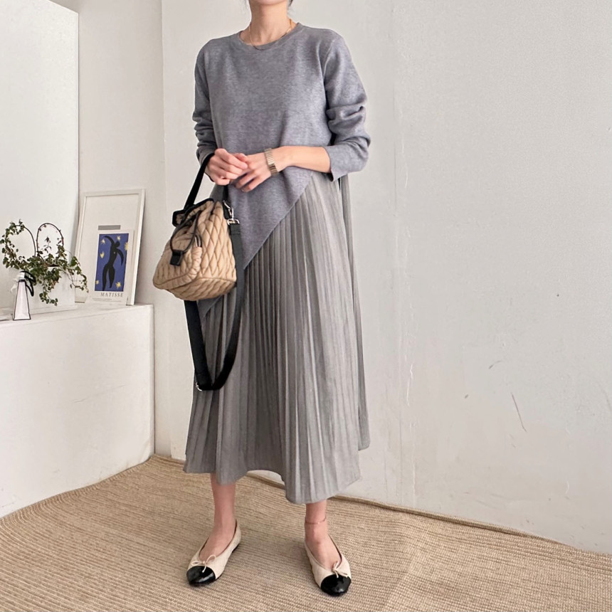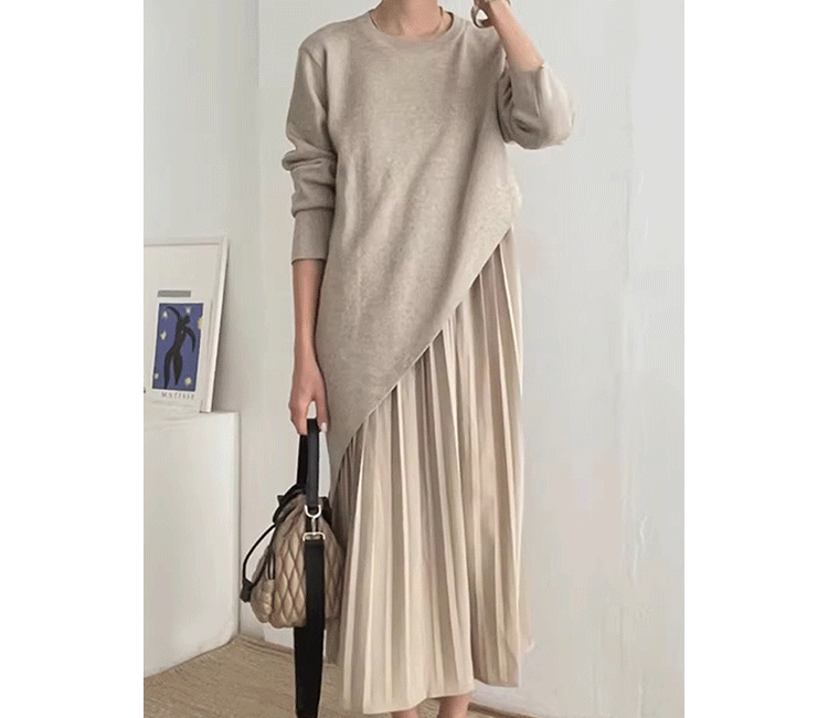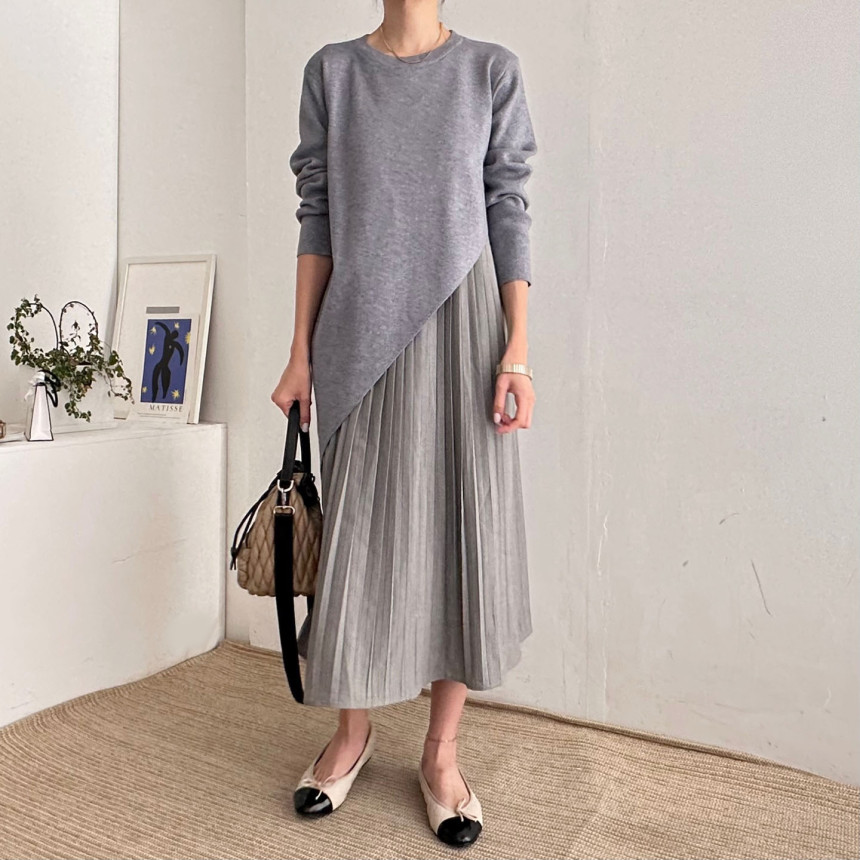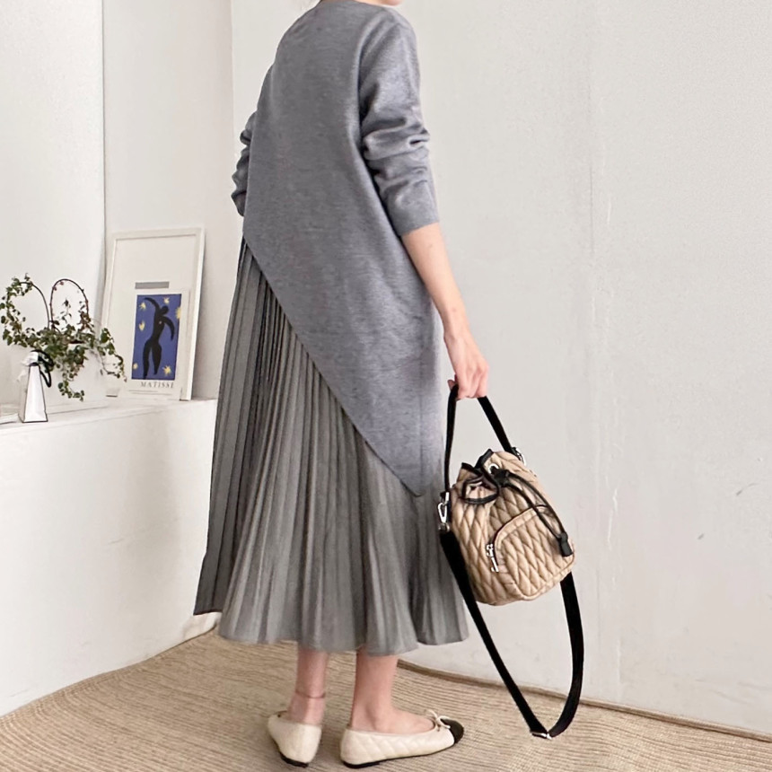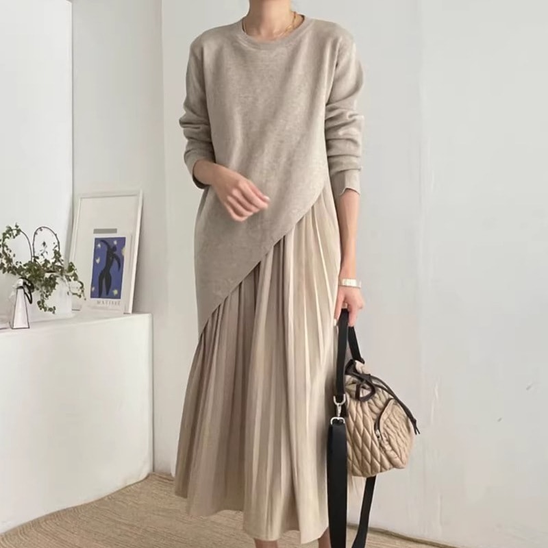 秋冬 新作 気質 シンプル ニットワンピース ロングワンピース 着痩せ 百掛け 切り替え ワンピース 冬 ニットワンピ