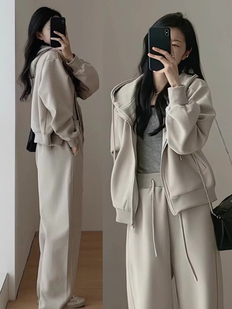 2点セット トップス+ズボン パーカー スウェット ア ップ 長袖フード付きアウター無地 スウェットパンツ韓国ファッション レディース