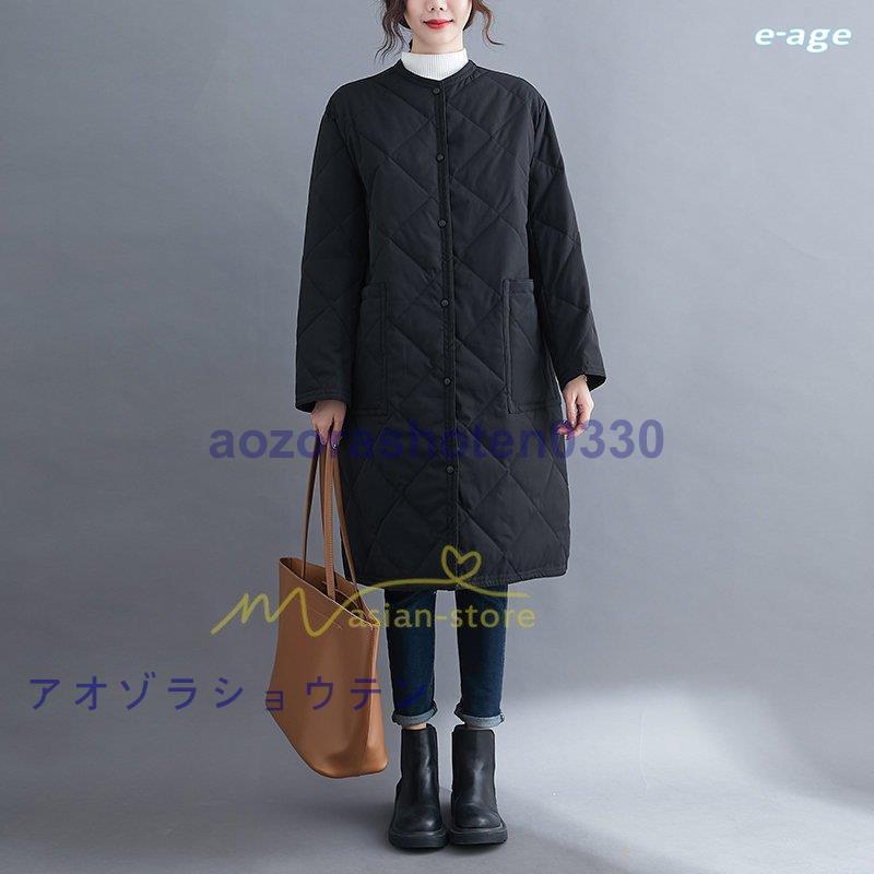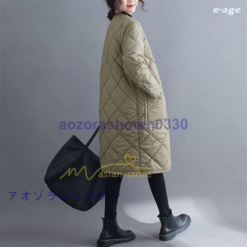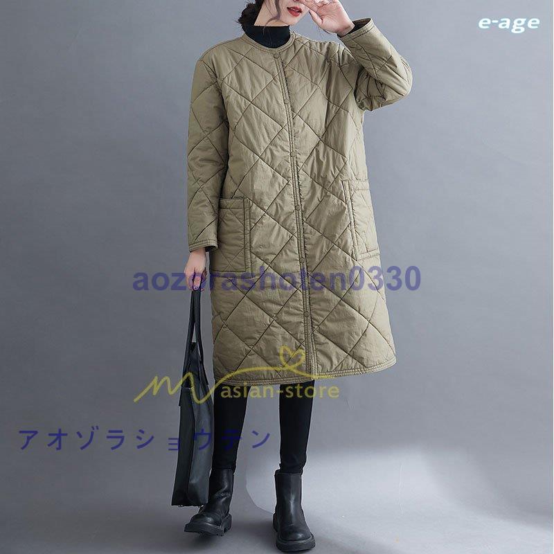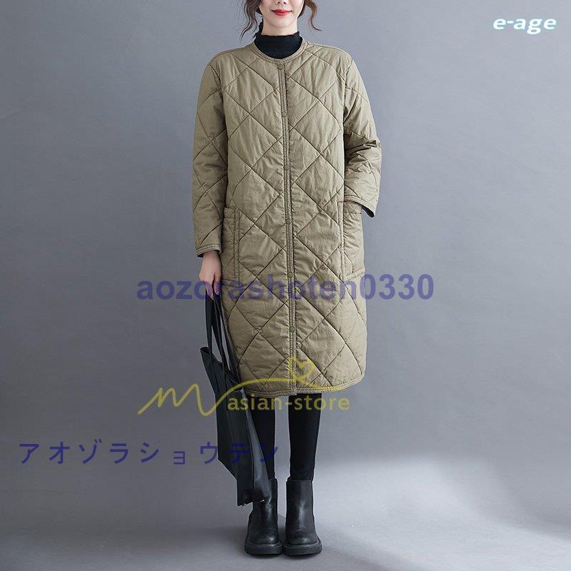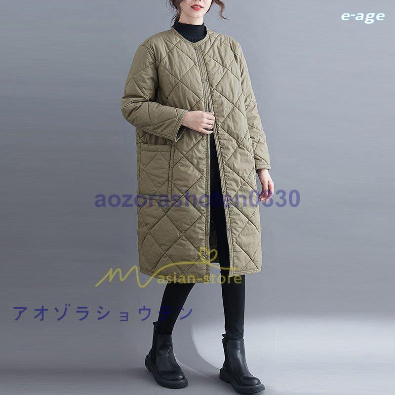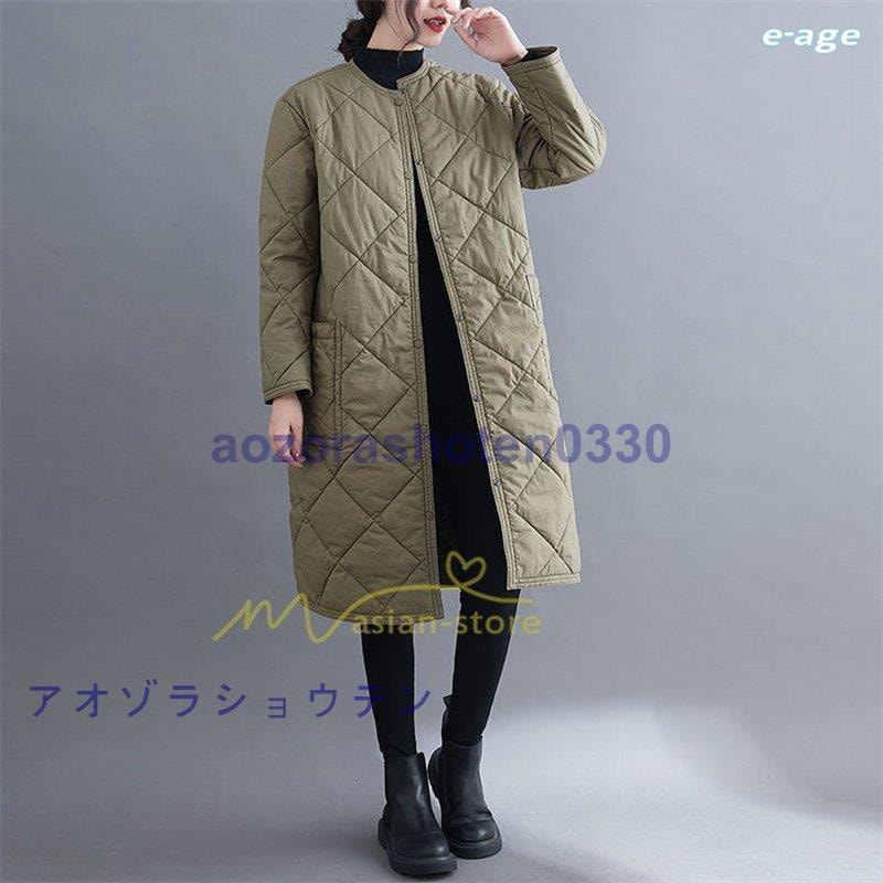 超目玉新品 ロングコート レディース キルト キルティング ロング丈 長袖 ラウンドネック ノーカラー カーディガン 20代30代40代50代 ママ 通勤通学 ゆったり 上品