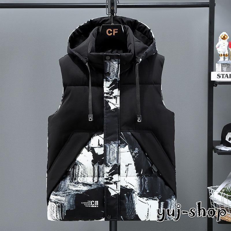 ダウンベスト ジャケット 袖なし フード付き メンズ インナーベスト 厚手 防寒 登山 防風 中綿 ベスト