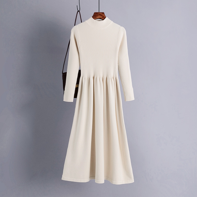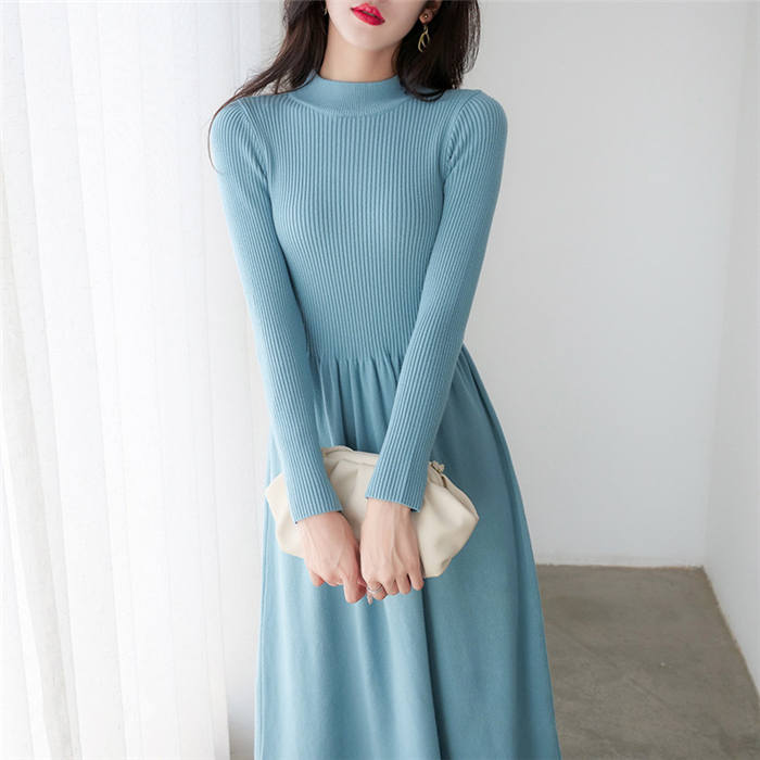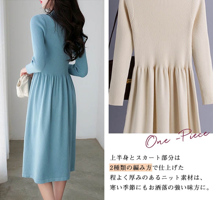 ニットワンピース 冬 ハイネック ワンピース 膝丈 秋冬 ワンピース 長袖 ワンピース きれいめ ハイウエスト ニット ニットワンピー aライン 大人 春 フレア 上品 大人カジュアル リブニ