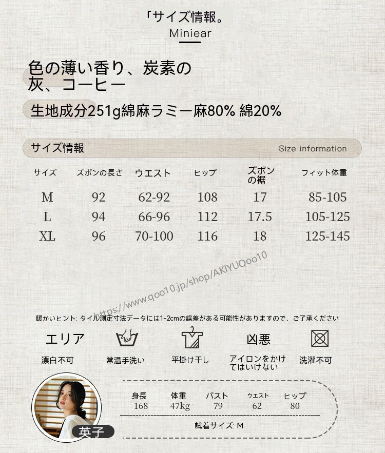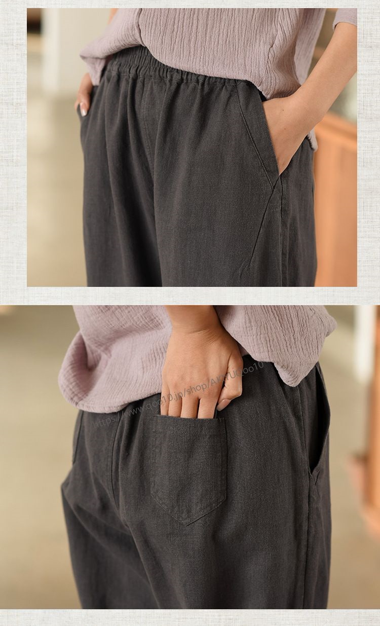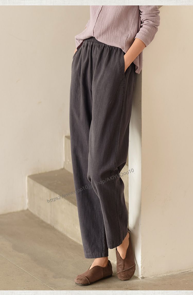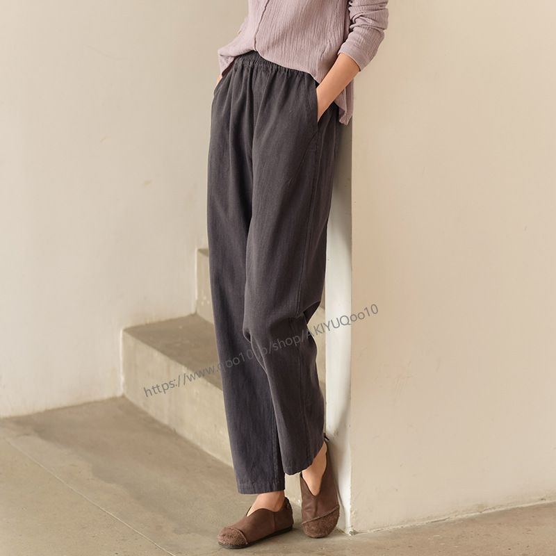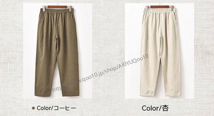 テーパードパンツ パンツ レディース ワイドパンツ リネン風パンツ 九分丈 ボトムス ズボン ウエストゴム 夏 綿麻 ロングパンツ 夏 麻パンツ 春 9分丈 ゆったり 大きいサイズ 無地 体型カバー