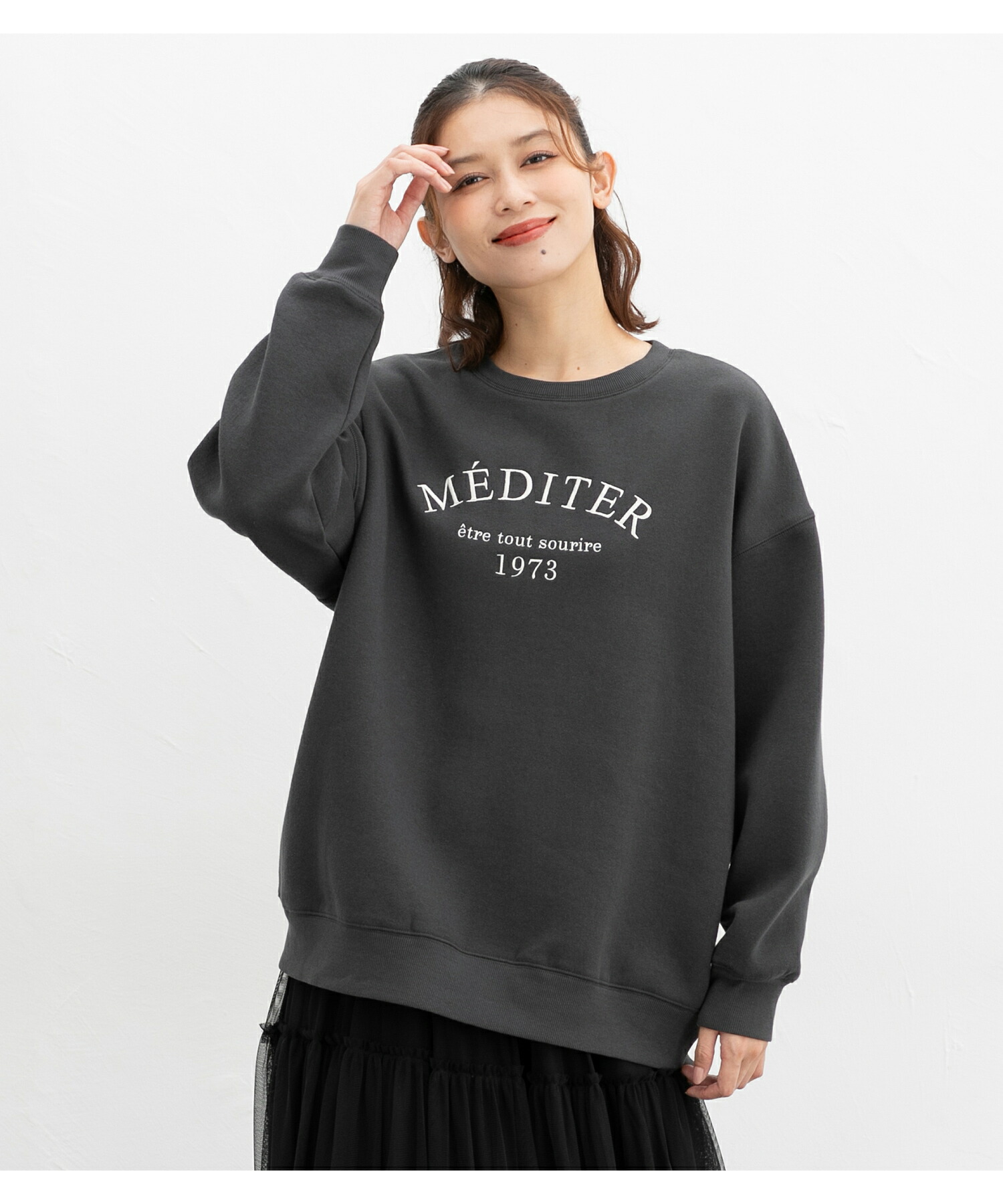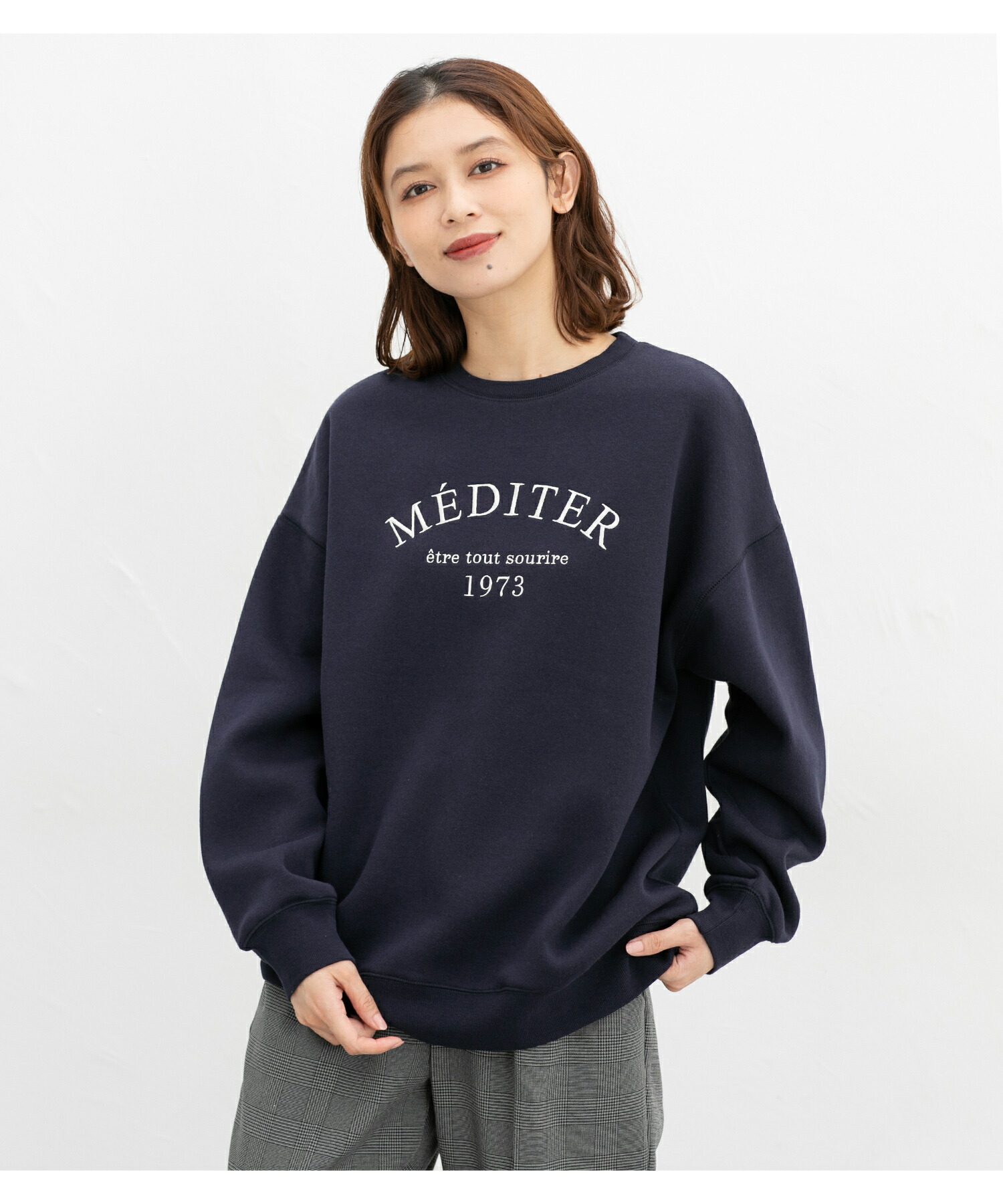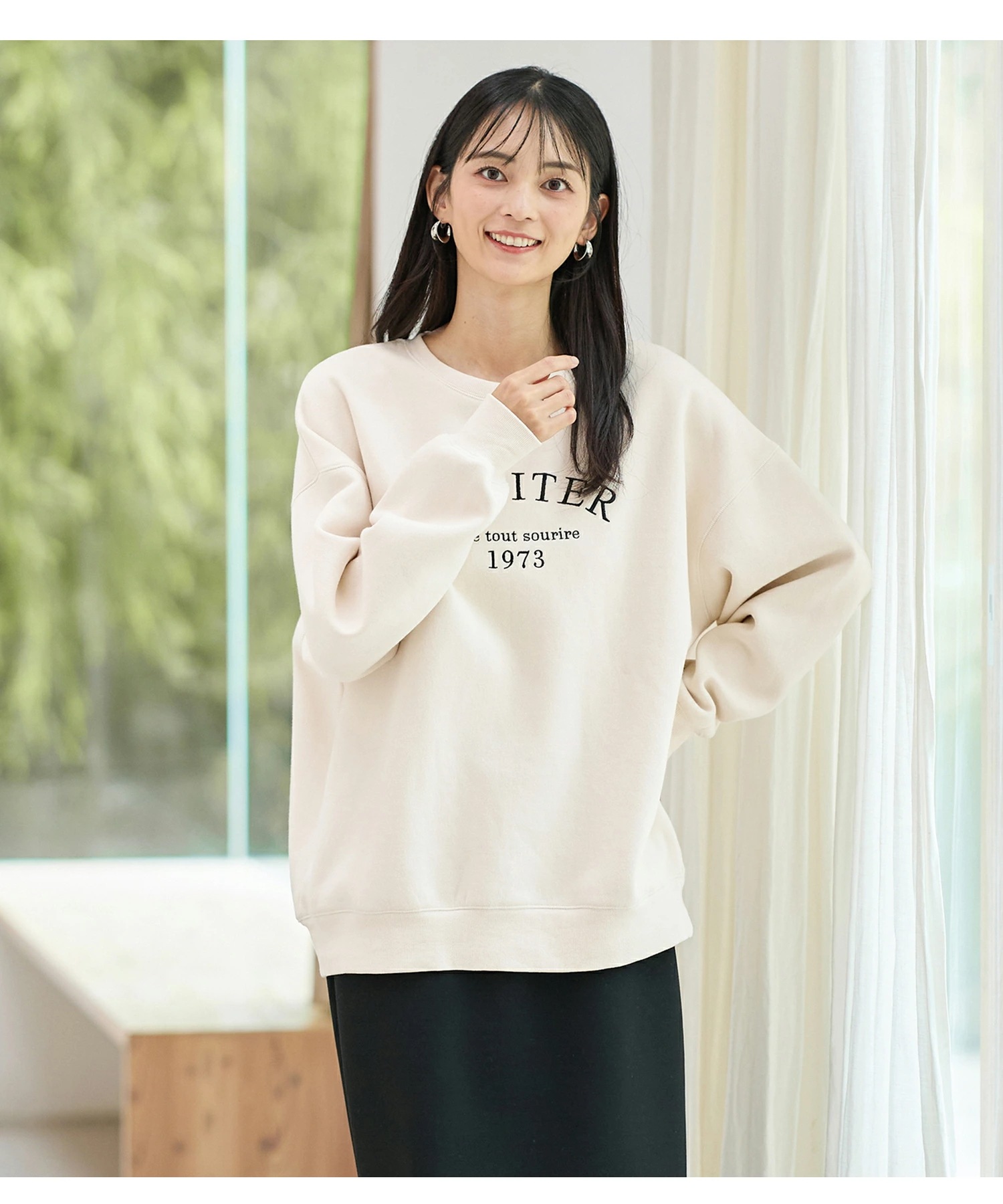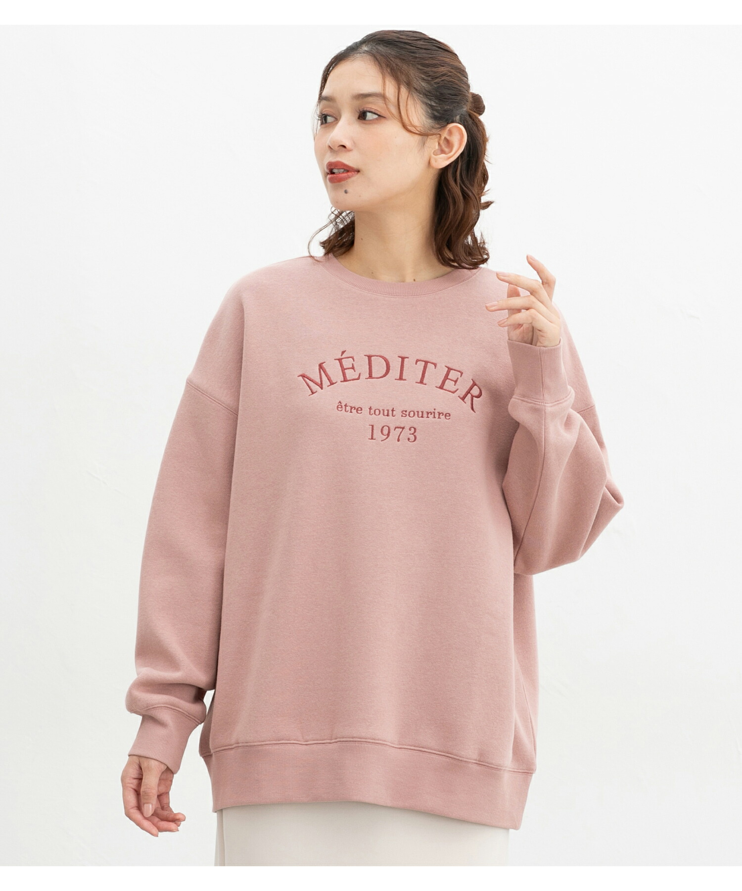 Honeys ロゴ刺繍ビッグトレーナー トップス スウェット 長袖 オーバーサイズ ハニぽか あったか 綿混 トレーナー