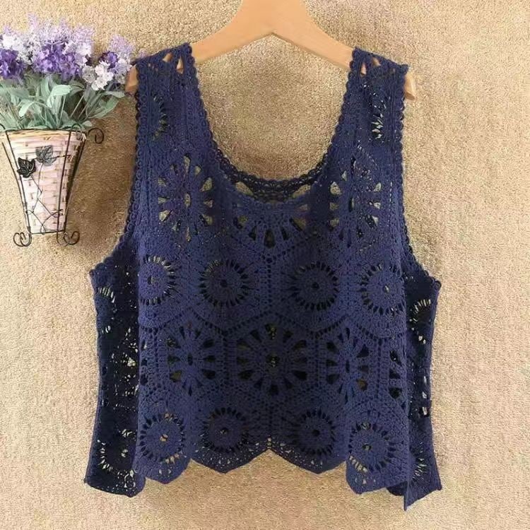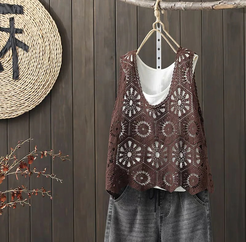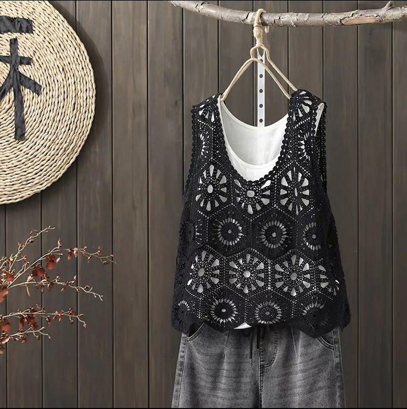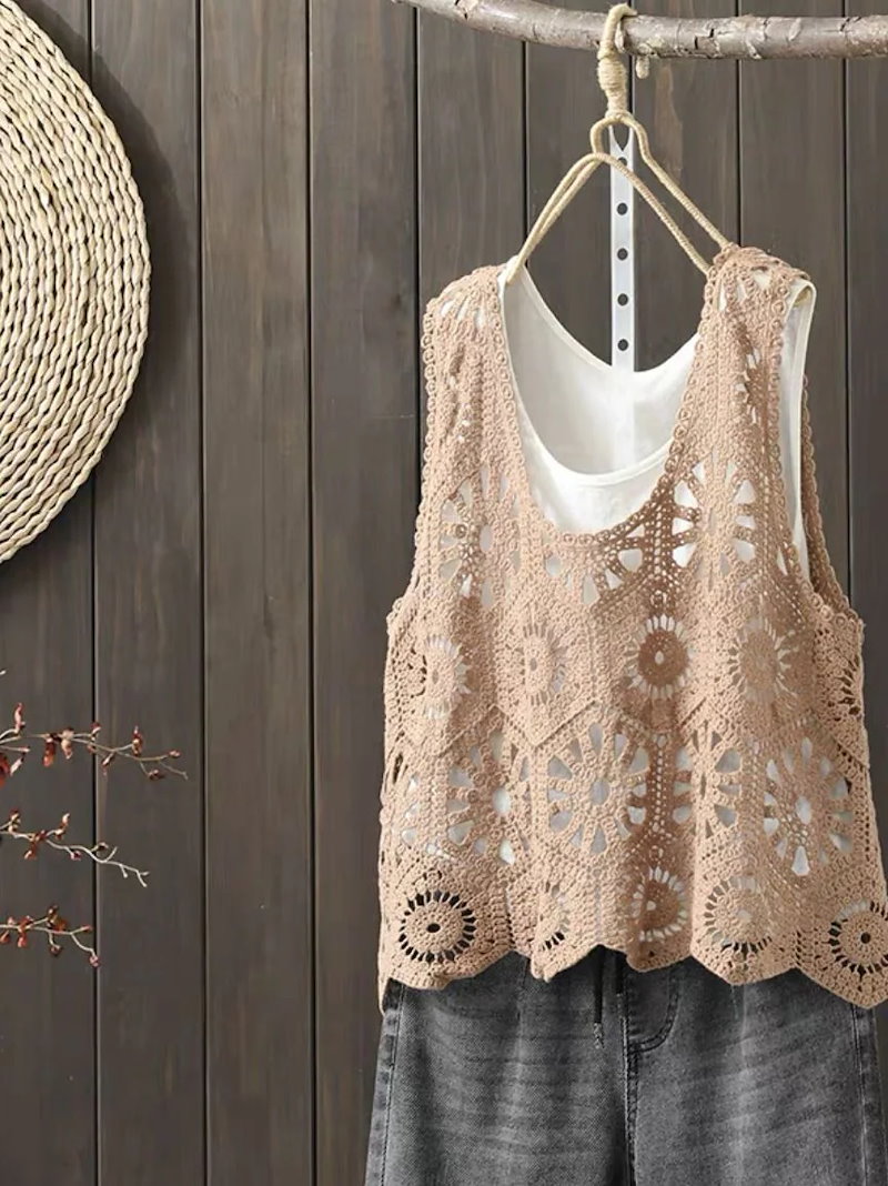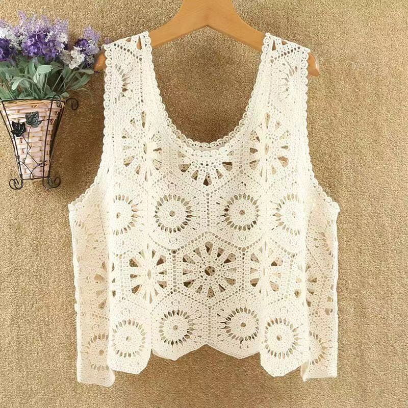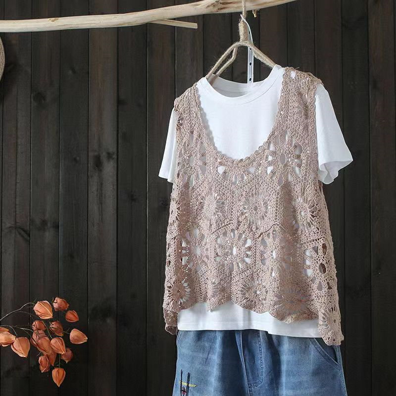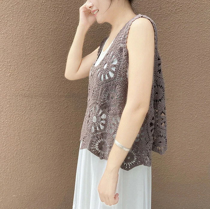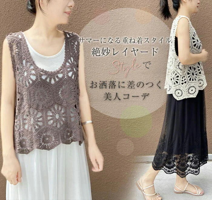 ベスト レディース 春 夏 クロシェ編み トップス 透かし編み プルオーバー Vネック かぎ編み カジュアル 無地 レイヤード ニットベスト トップス きれいめ カジュアル フェミニン