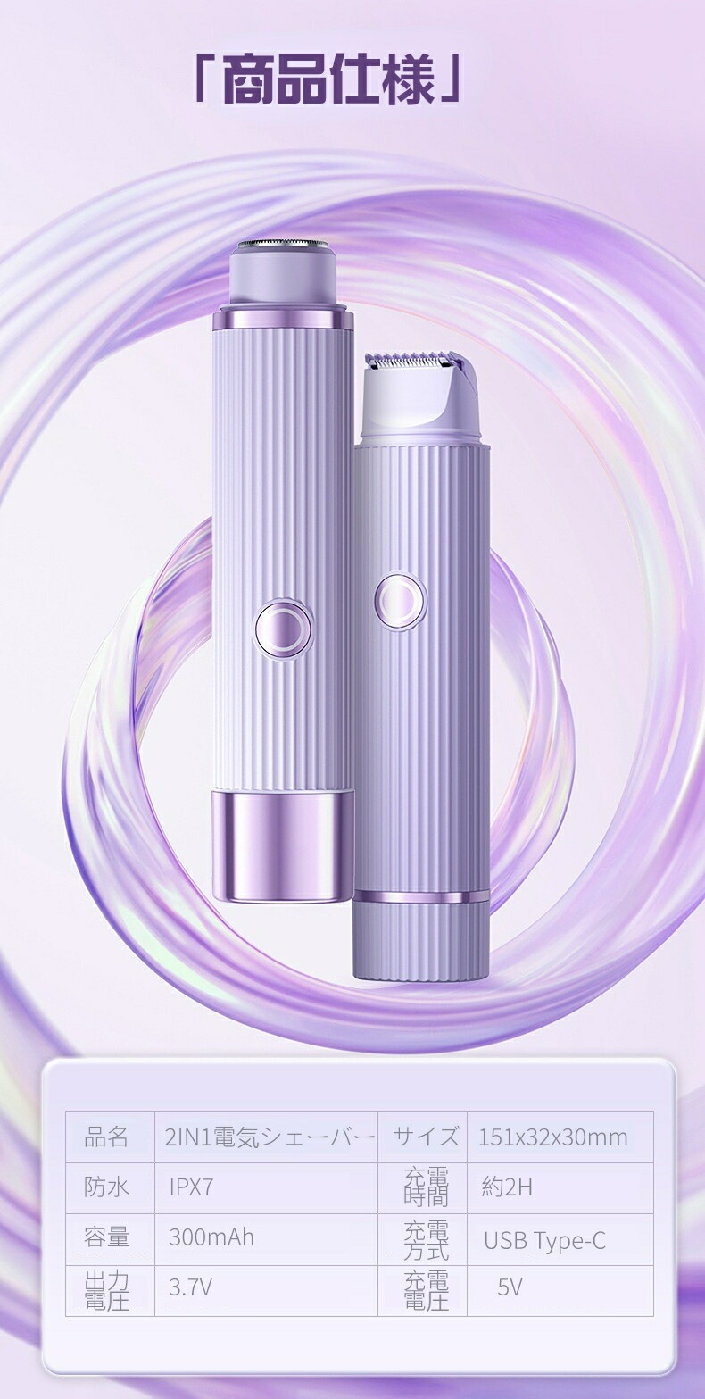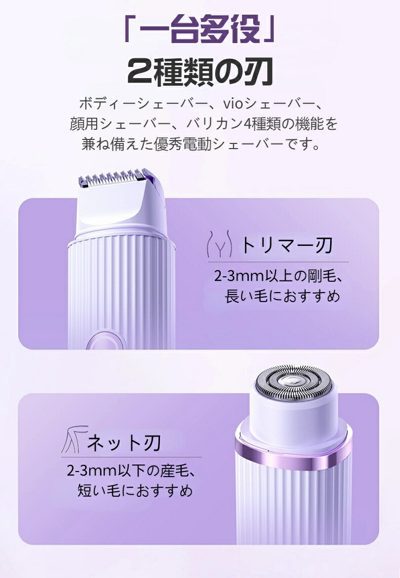 レディースシェーバーシェーバー VIOシェーバー 女性用 フェイスシェーバー USB充電式 電気シェーバー レディースシェーバー IPX7防水 除毛 剃刀