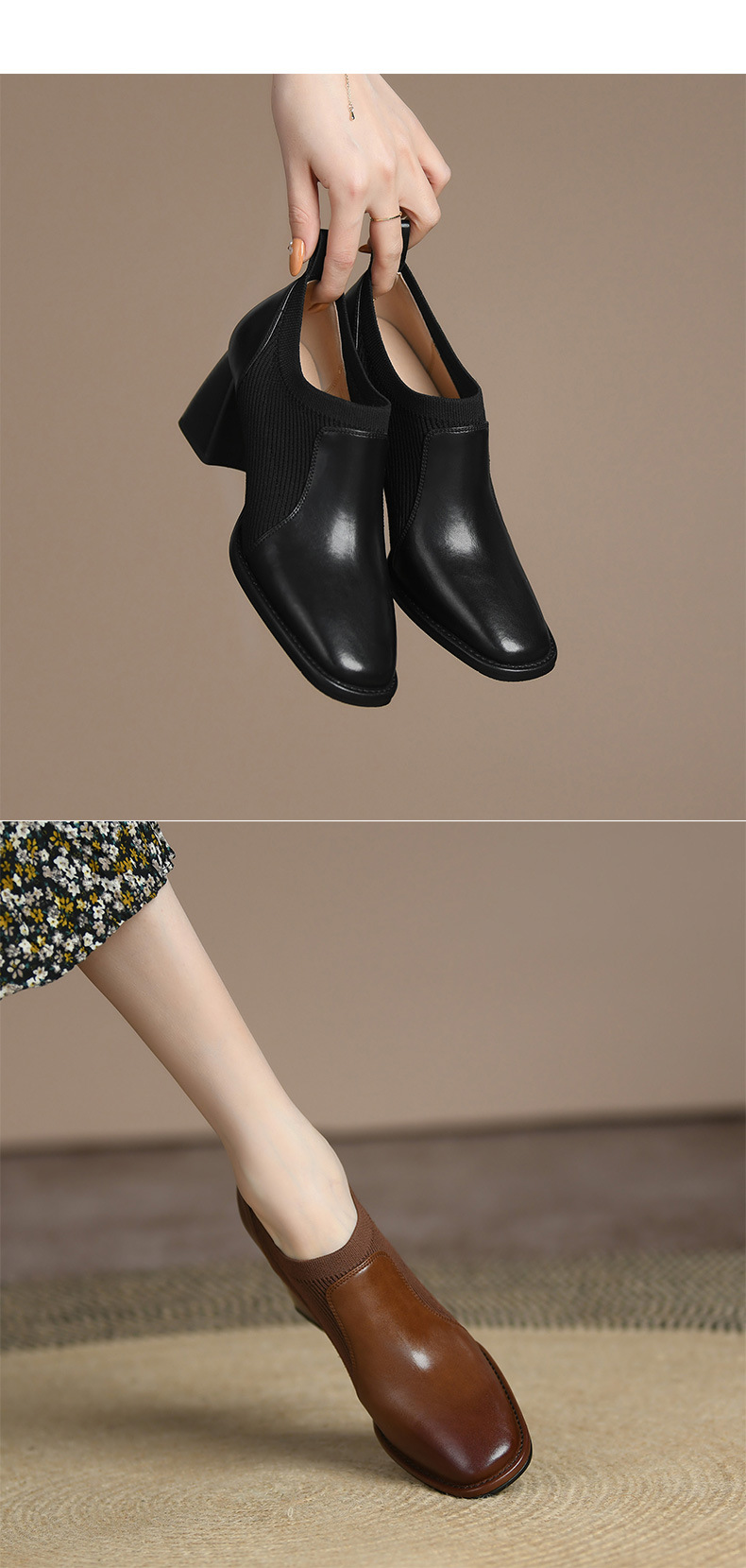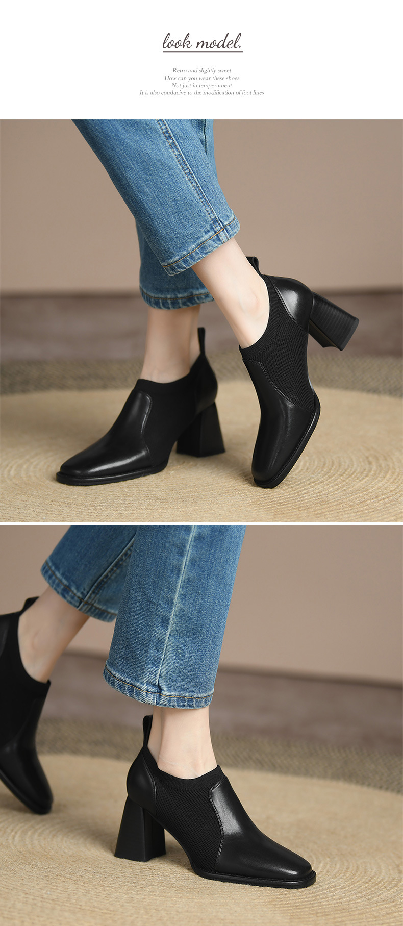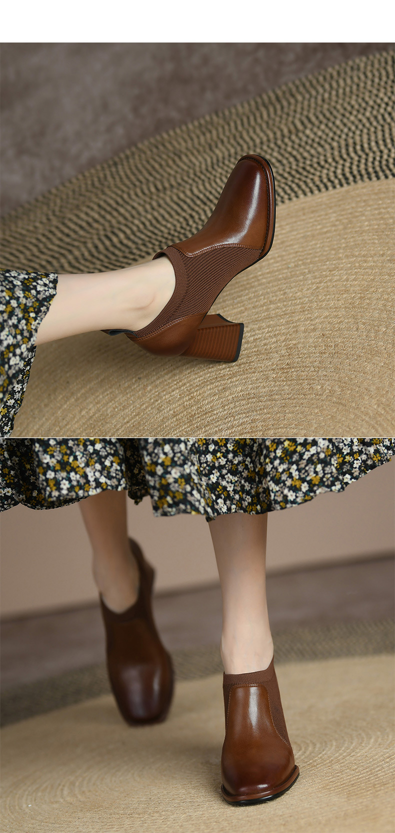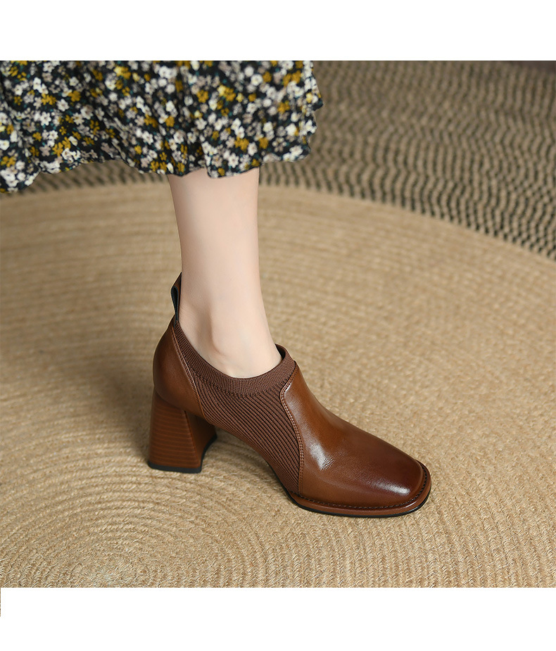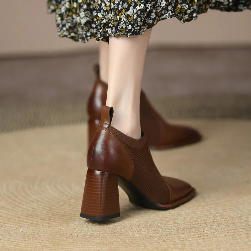 秋冬ファッション レディースショートブーツ ーシューズ ニットソックス ストレッチ ヒール 太ヒール 美脚 ミドルカットョート 調靴 歩きやすい ミドルヒール ブーツ 靴