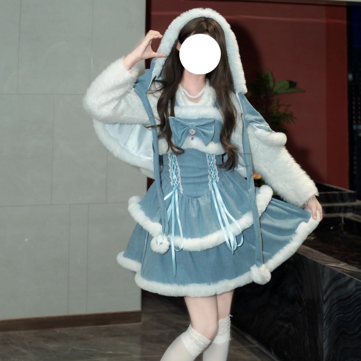 颜色分类: 赤いドレス 青いドレス 赤いドレス+リボン+ケープ 青いドレス+リボン+ケープ