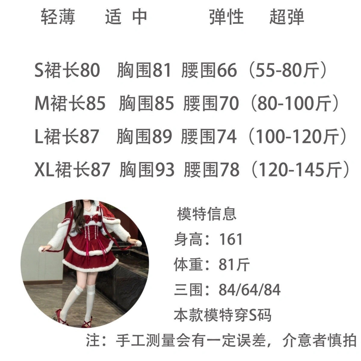 尺码: S(40kg-47.5kg) M(47.5kg-55kg) L(55kg-60kg) XL(60kg-65kg)