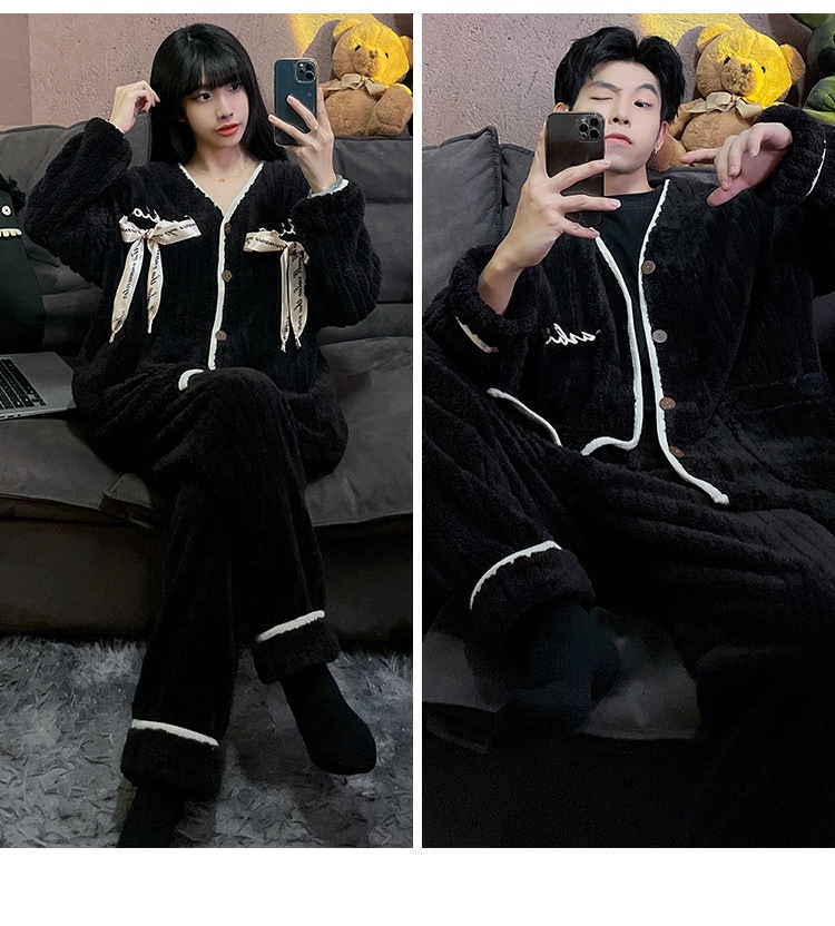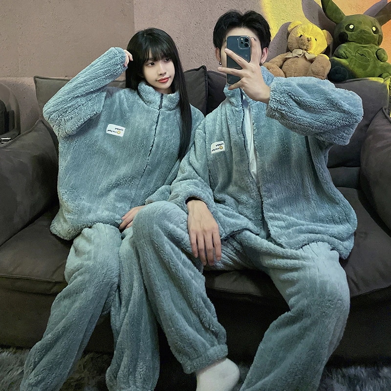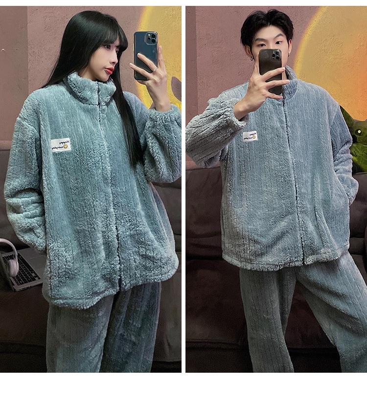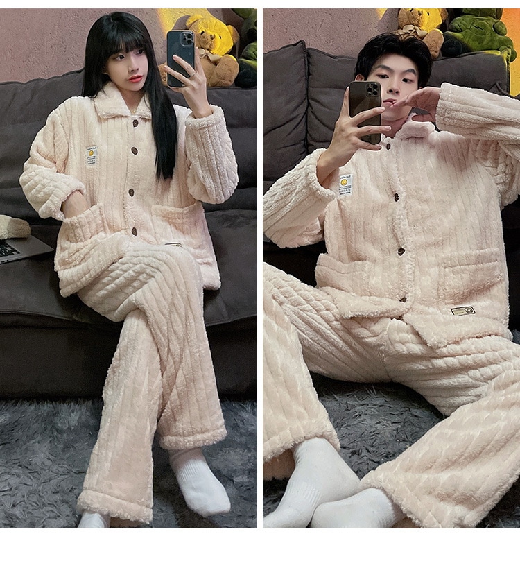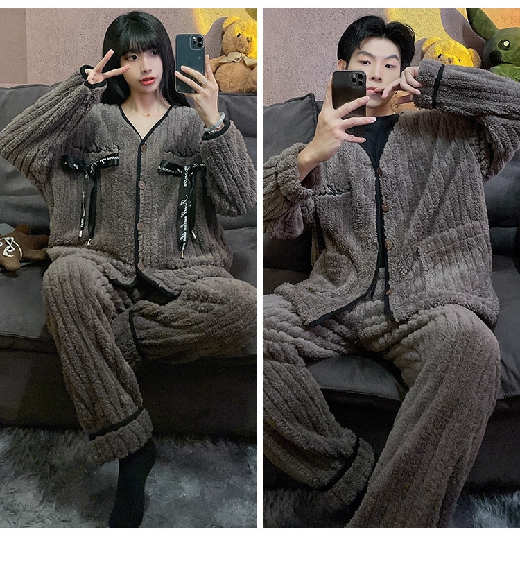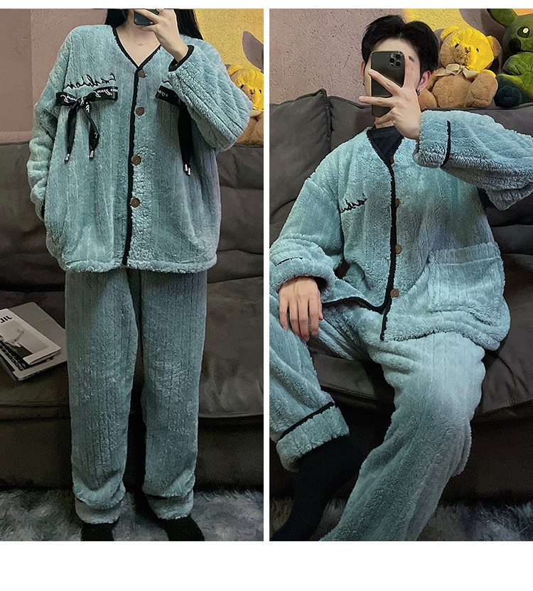 秋冬新作 レディース ルームウェア 上下セット男女同じカップル学生 部屋着セット秋冬 長袖 フランネル パジャマ メンズ ルームウェア ペアパジャマ 前開き もこもこ 部屋着 結婚祝い プレゼント
