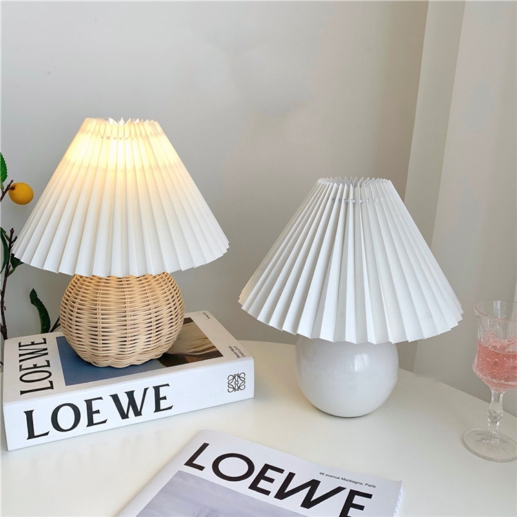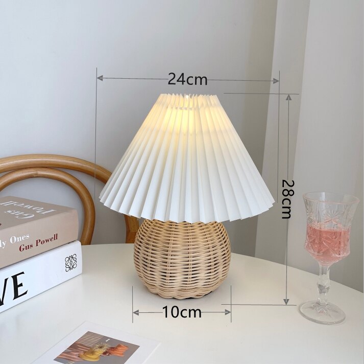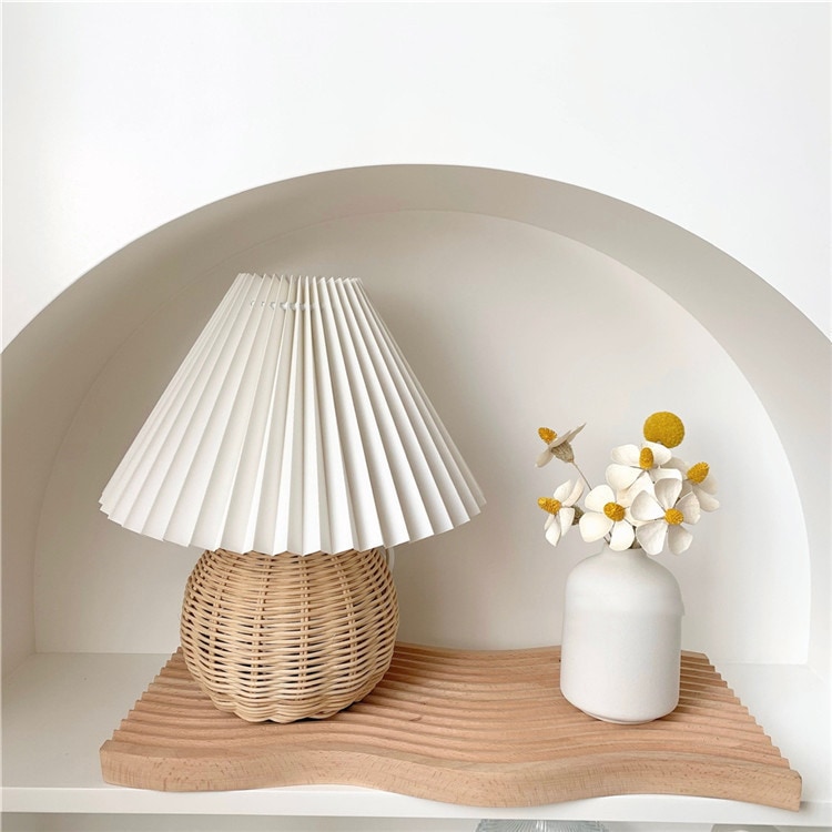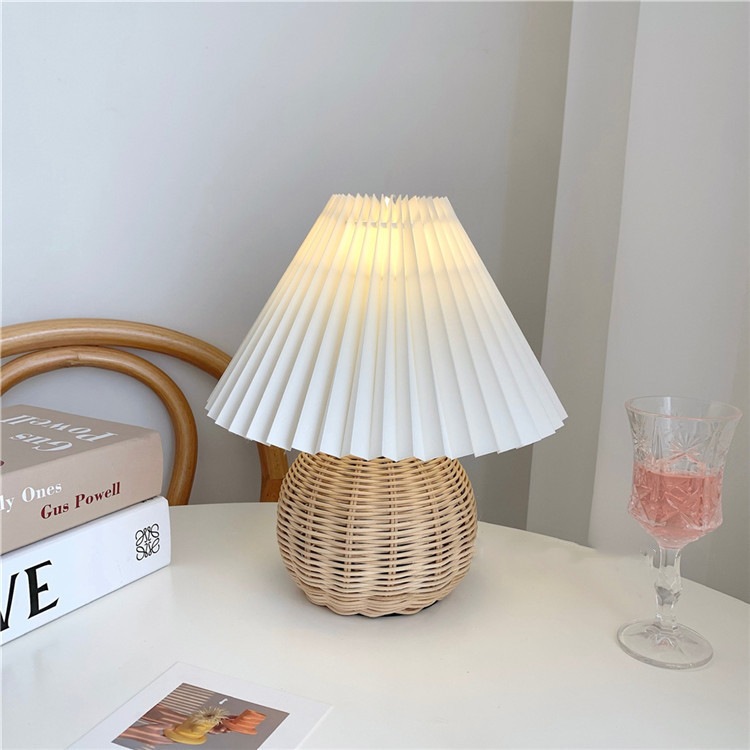 籐 プリーツ テーブルランプ レトロ 寝室 ベッドサイド 装飾 シンプル 大人気 デスクライト