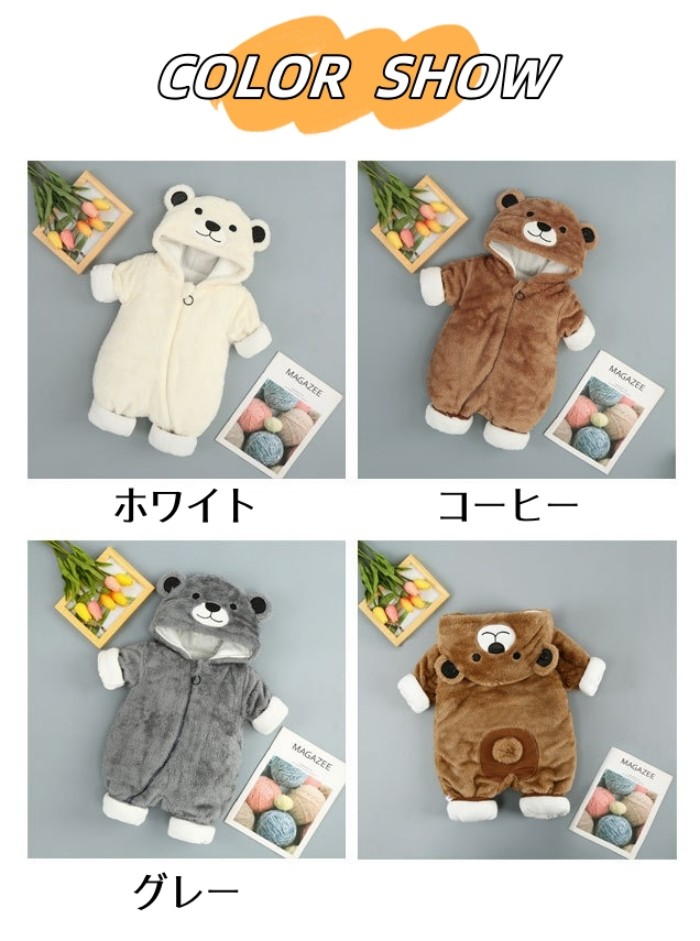 ロンパース 長袖 男の子 女の子 ベビー服 カバーオール 防寒着 秋冬 新生児 ジャンプスーツ 可愛い 暖かい 前開き フード付き 百日祝い