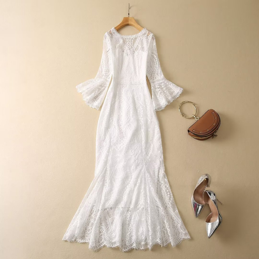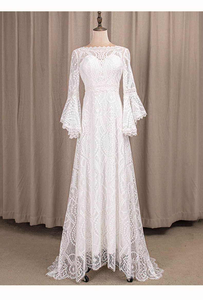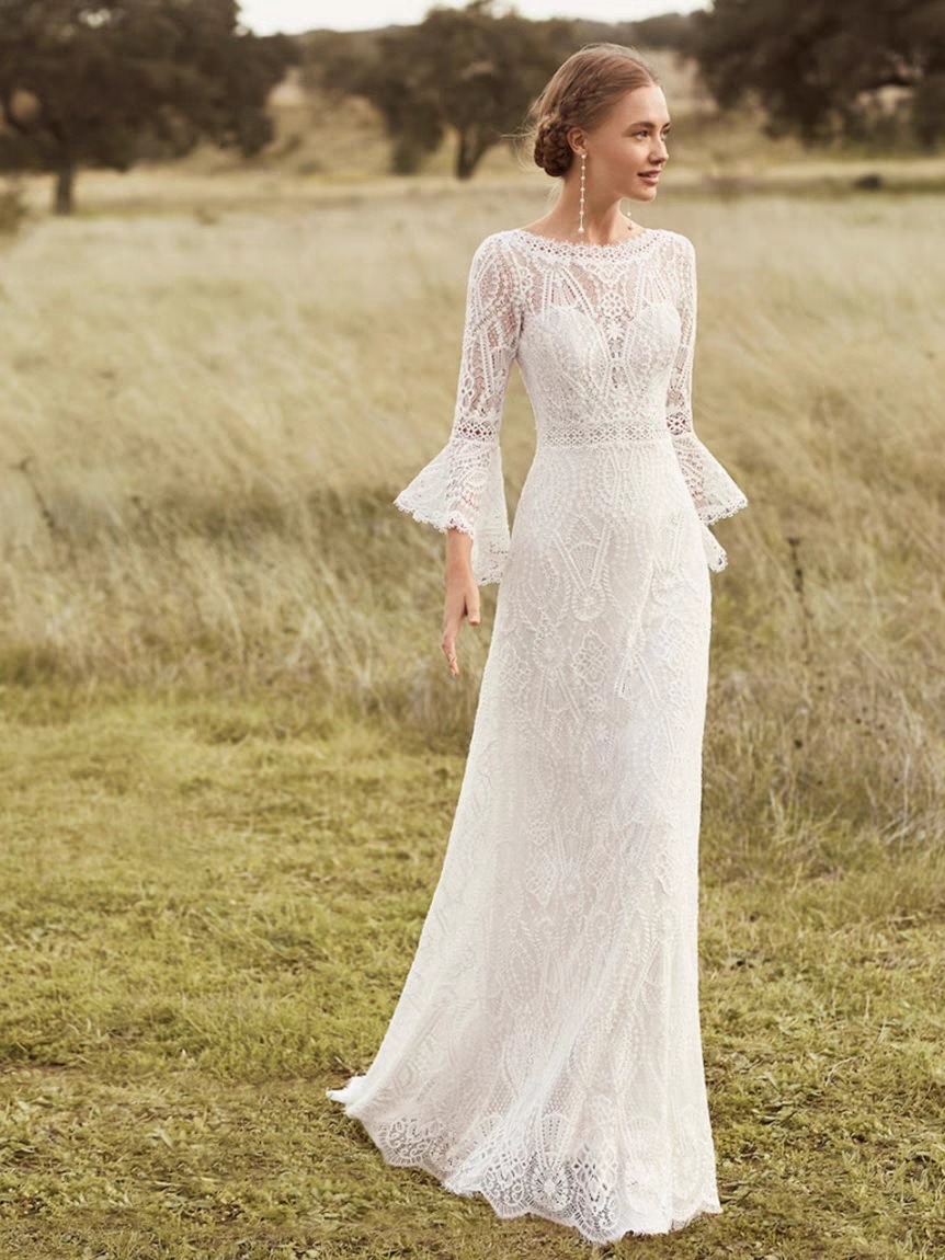 ウェディングドレス 袖あり スレンダーライン 白 花柄 総レース シースルー ワンピース 結婚式 二次会 披露宴 後撮り 二次会ドレス 花嫁ドレス ウエディング