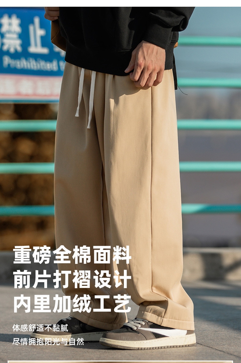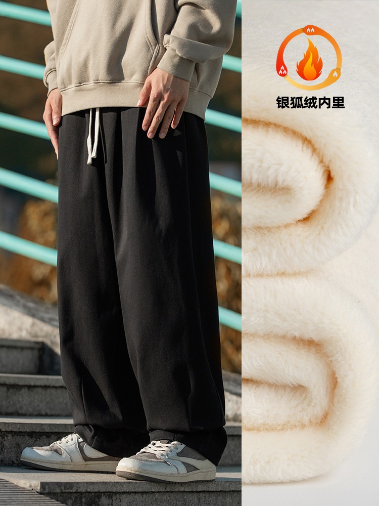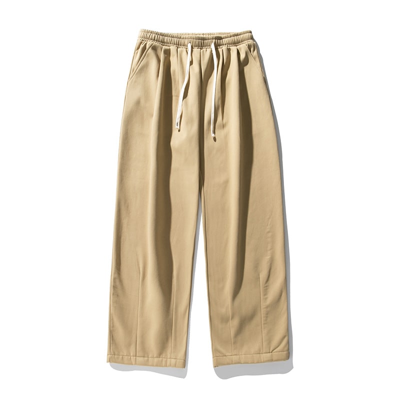 メンズ裹起毛カジュアルパンツ秋冬新作タックデザイン長ズボンゆドローストリングスウェットパンツ ロングパンツ