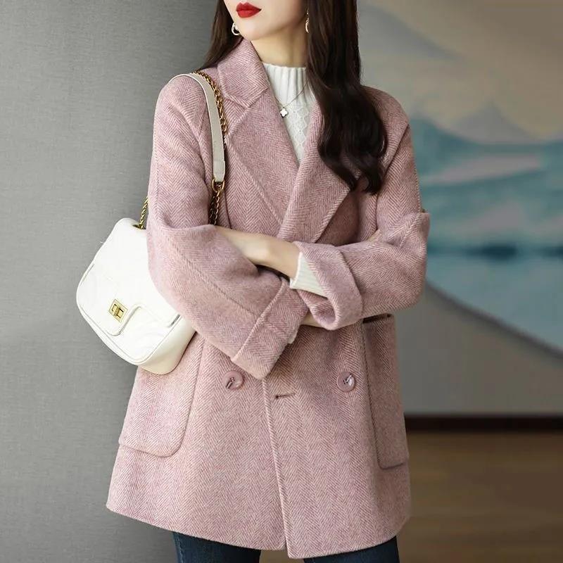 ジャケット 冬アウター 2023秋冬新作ウールミドル丈コートレディーストレンドファッションヘリンボーン柄ゆったり薄手西洋風小さい婦人服 テーラードジャケット