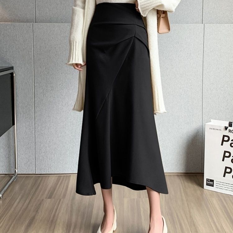 プリーツスカートマキシスカートレディース イレギュラースーツ スカート 春 上質なドレープ 大きく揺れる アンブレラスカート ハイウエスト バッグ ヒップ マーメイドドレス韓国ファッション