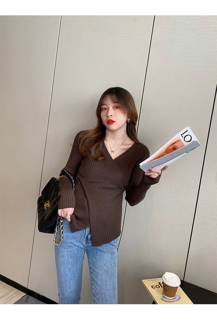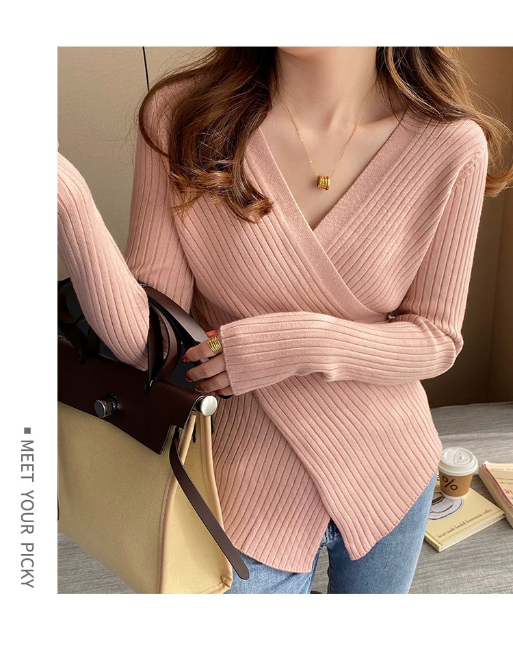 カシミヤタッチ ベーシックニット ニットセーター アンダーウェア Vネック ウエスト引き締め ブラウス レディース トップス 百掛け アウター クロス 長袖 シャツ 日焼け止め