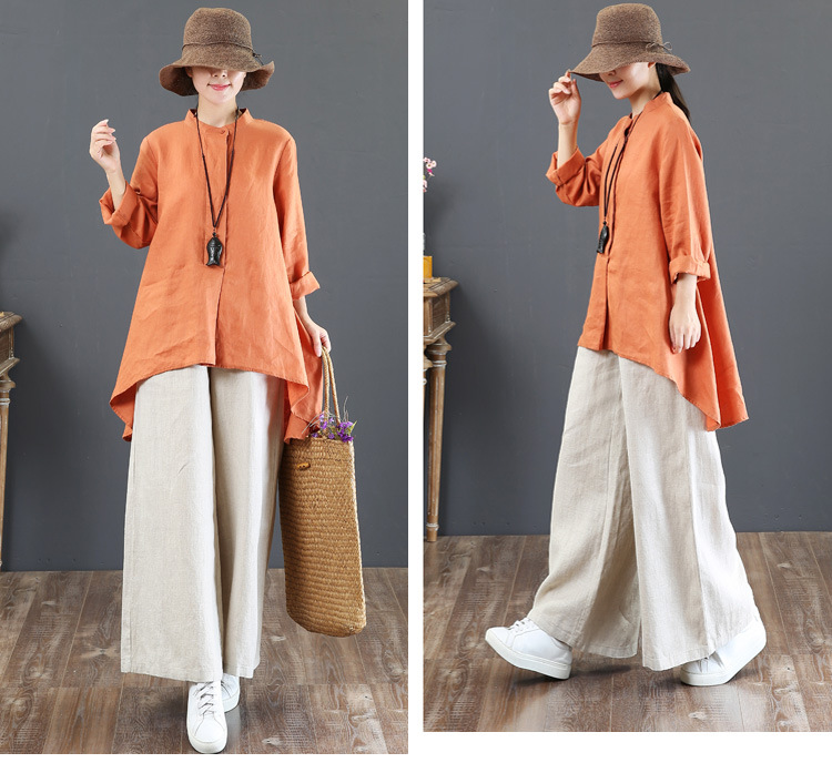 ワイドパンツ 綿麻ワイドパンツ リネン風 ボトムス 麻綿パンツ ガウチョパンツ レディース 体型カバー ナチュラルな風合い ゆったり ロングパンツ