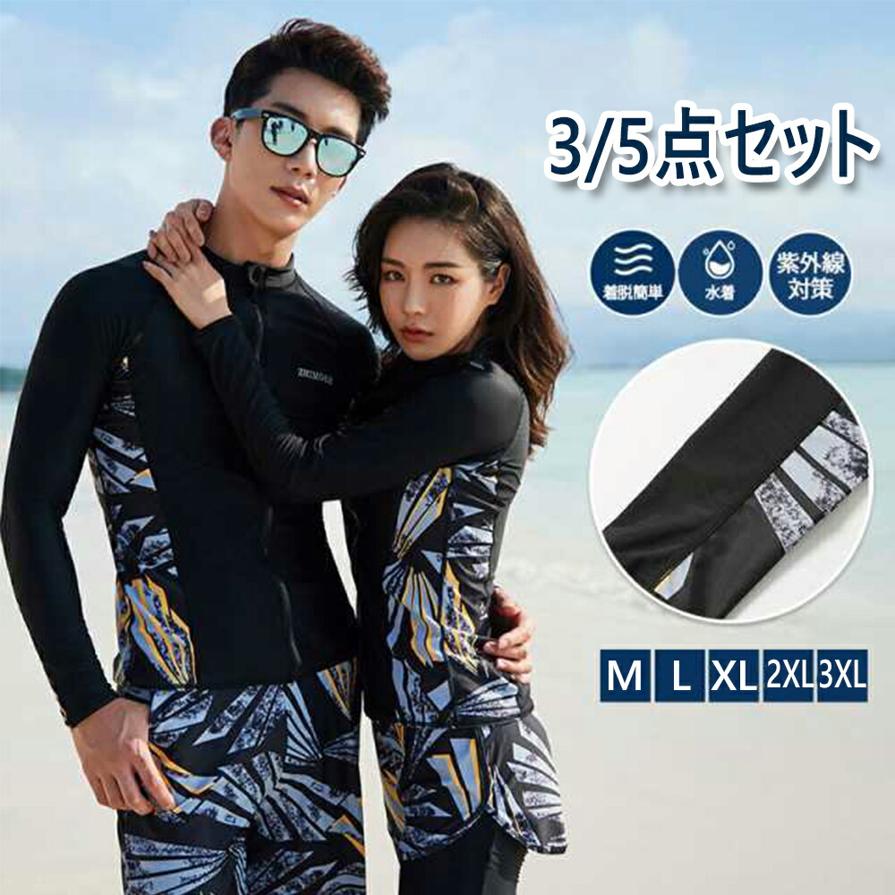 水着 レディース メンズ 長袖水着 ラッシュガード 5点 3点セット 上下セット 体型カバー水着セット 日焼け対策 大きいサイズ タンキニ 紫外線対策 UVカット 夏 夏服 カップル フィットネス