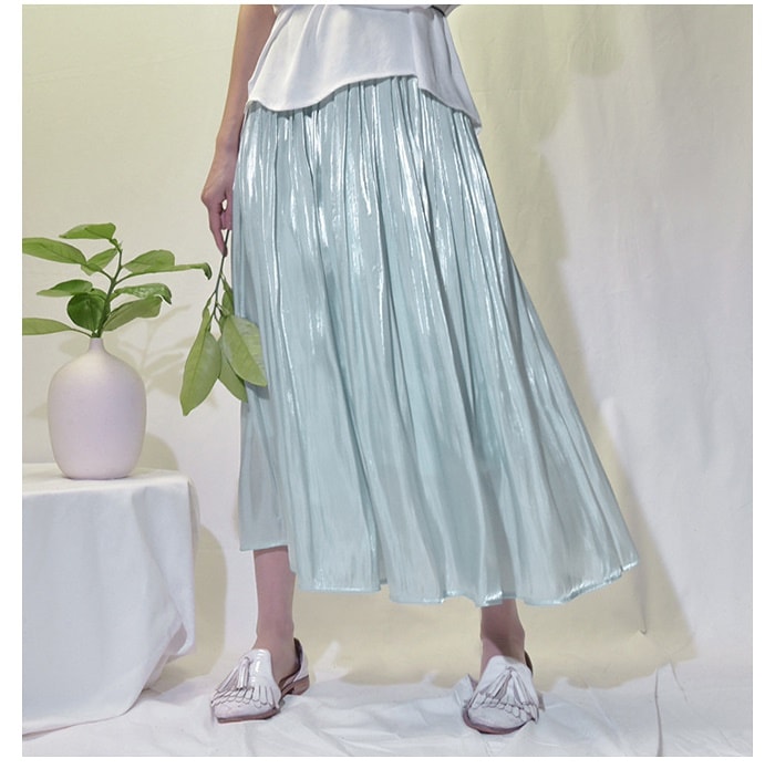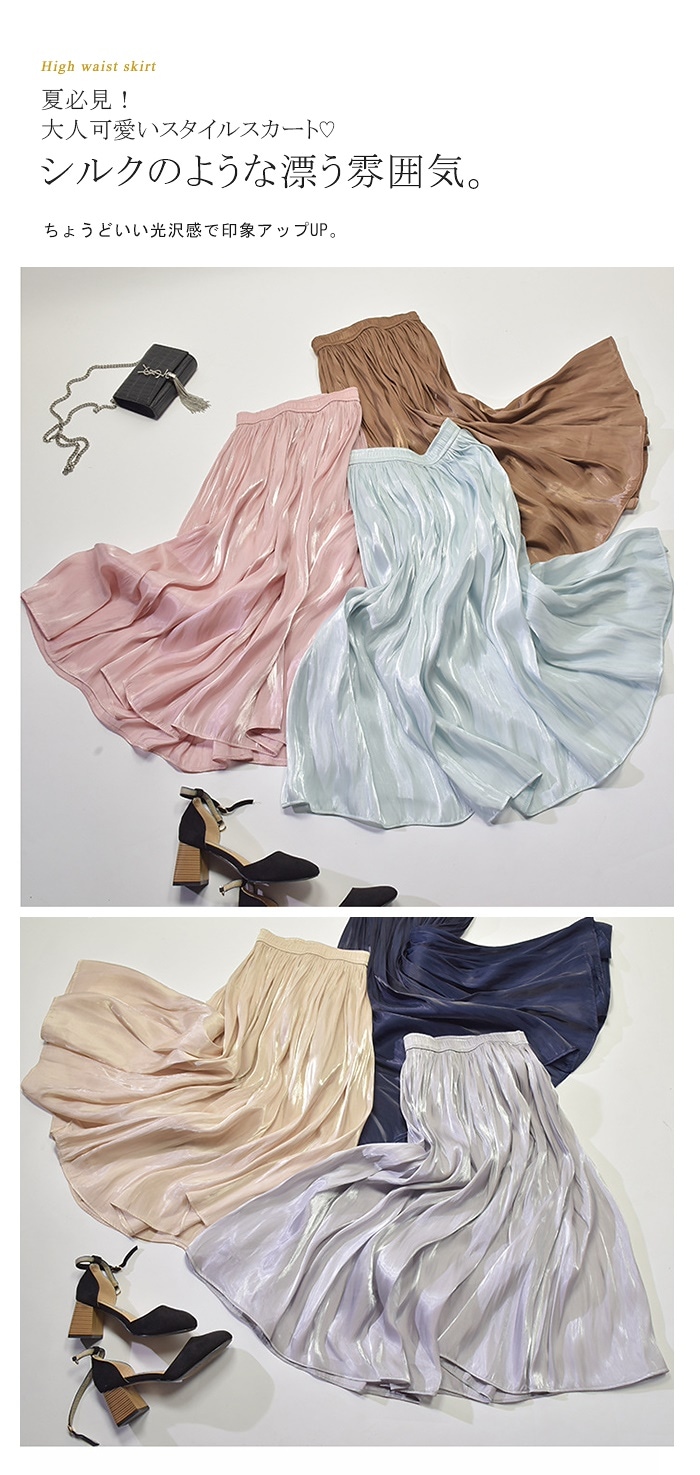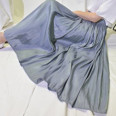 自社生產髙品質 カラバリ豊富艶めき光沢サテンスカート レディース スカート 韓国ファッション マキシ ロングスカート