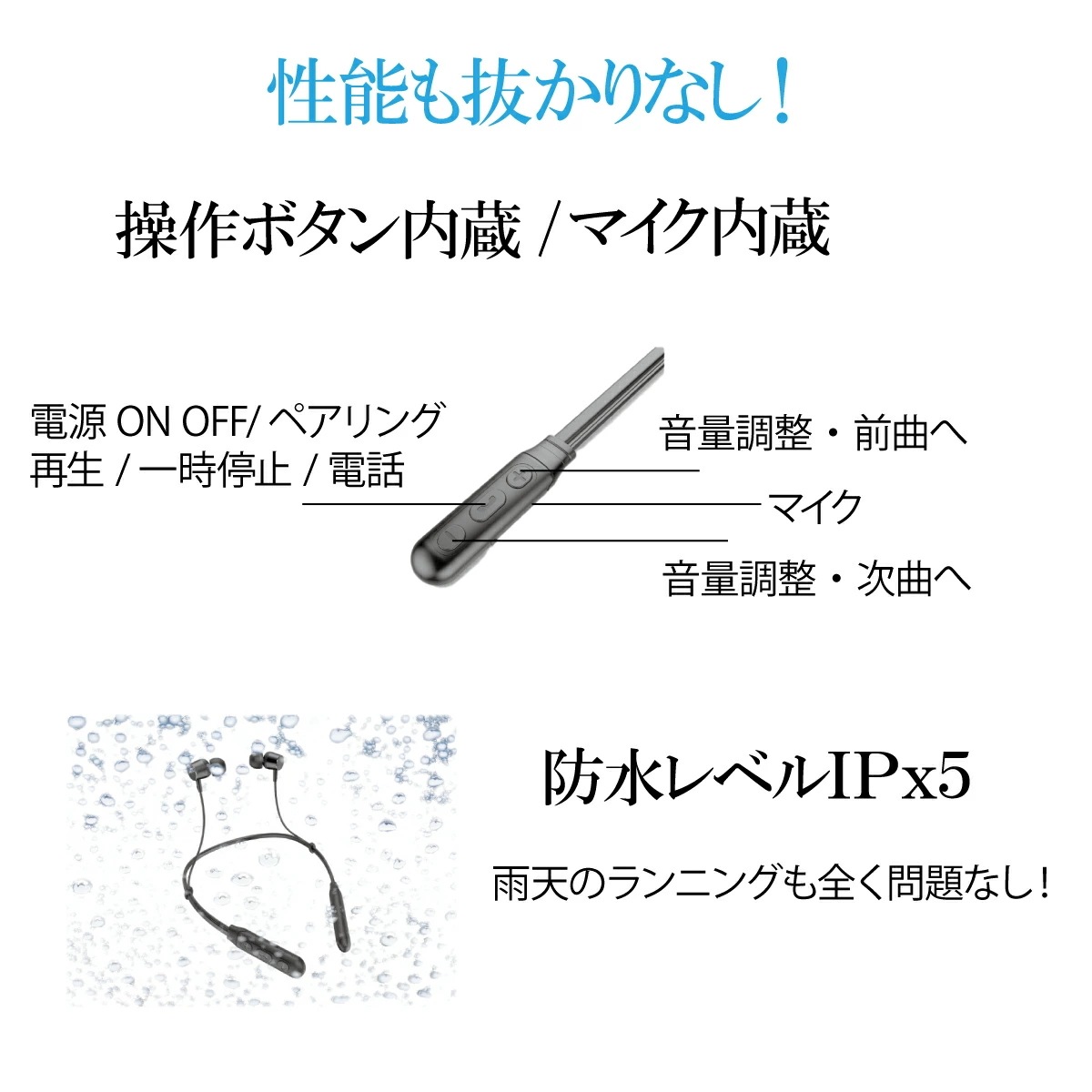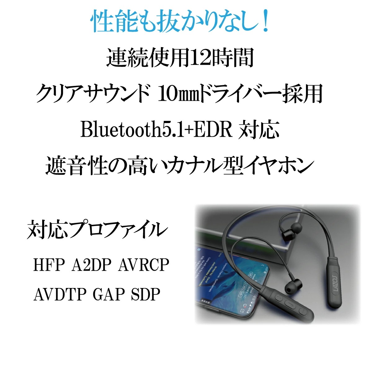 ワイヤレスイヤホン イヤホン Bluetooth 5.1 首掛け ネックバンド型 IPX7防水 スポーツ仕様 カナル型 iphone Android 首かけ イヤーピース付き