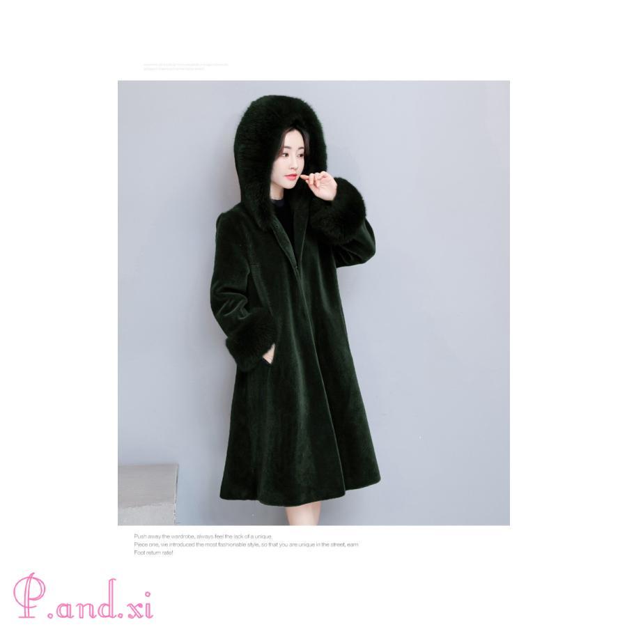 2018冬新作 レディース 暖かい フード付き フェイクファーコート ロング丈 大人かわいい 秋冬用 厚手 Aライン 防寒着 毛皮コート アウター