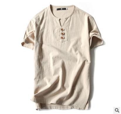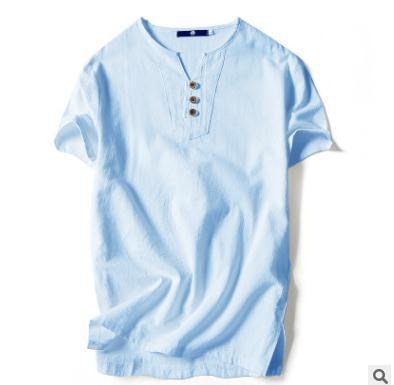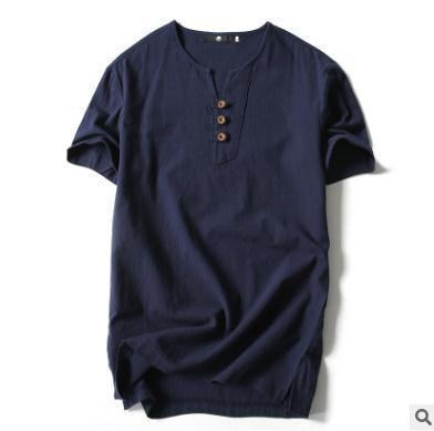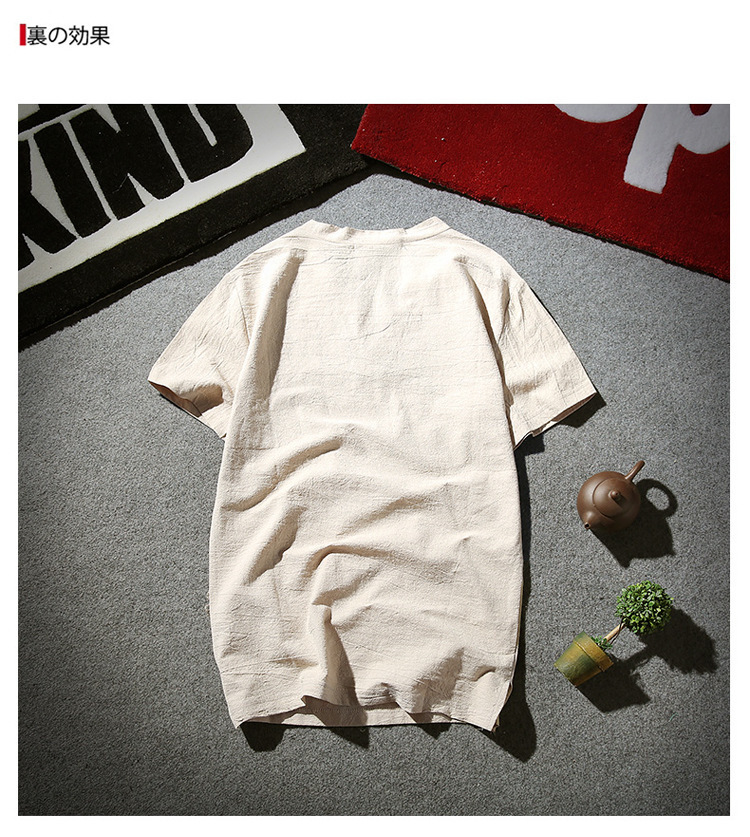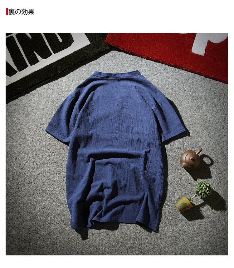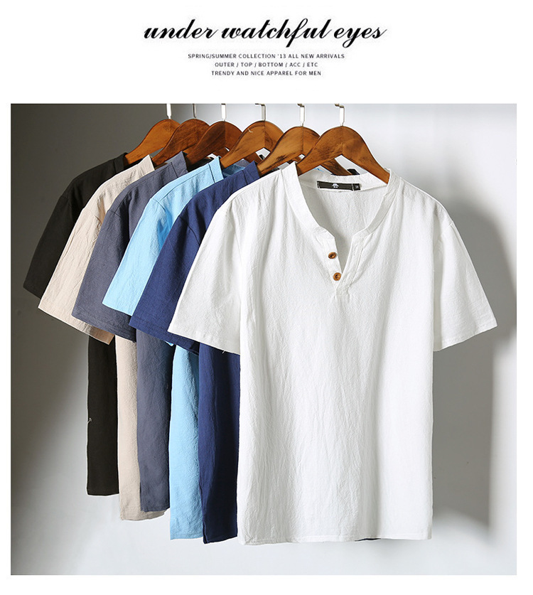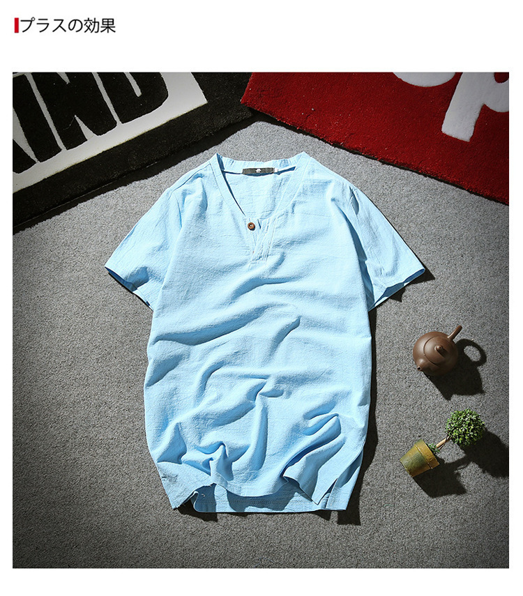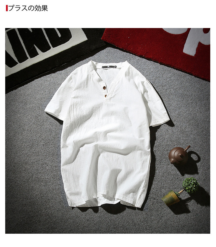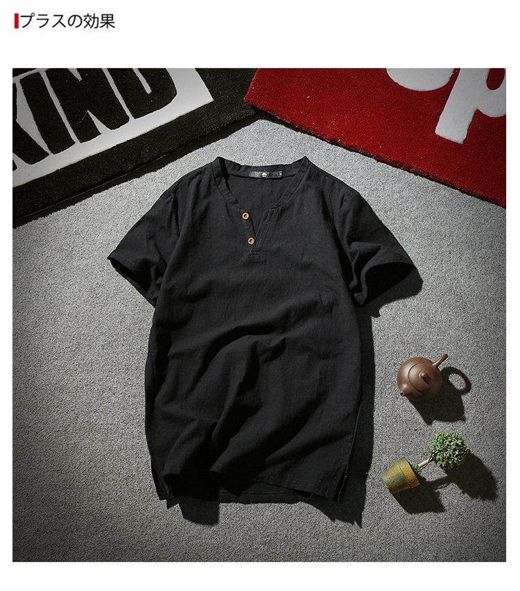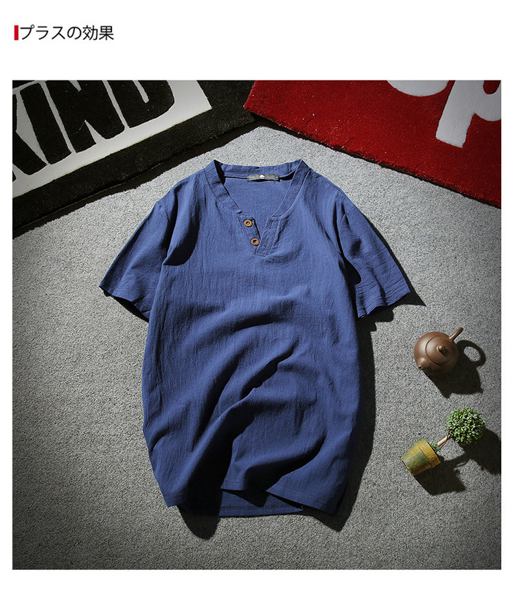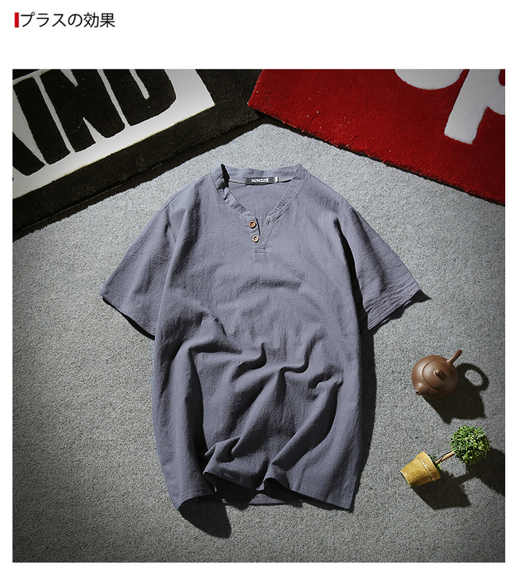Tシャツ メンズ 半袖シャツ 棉麻 シャツ リネンシャツ 棉麻 Tシャツ 棉麻 おしゃれ トップス Tシャツ メンズ 半袖 無地 Vネック ボタン付き ティーシャツ リ
