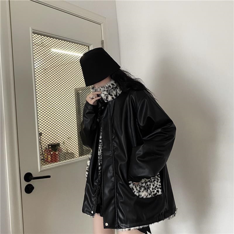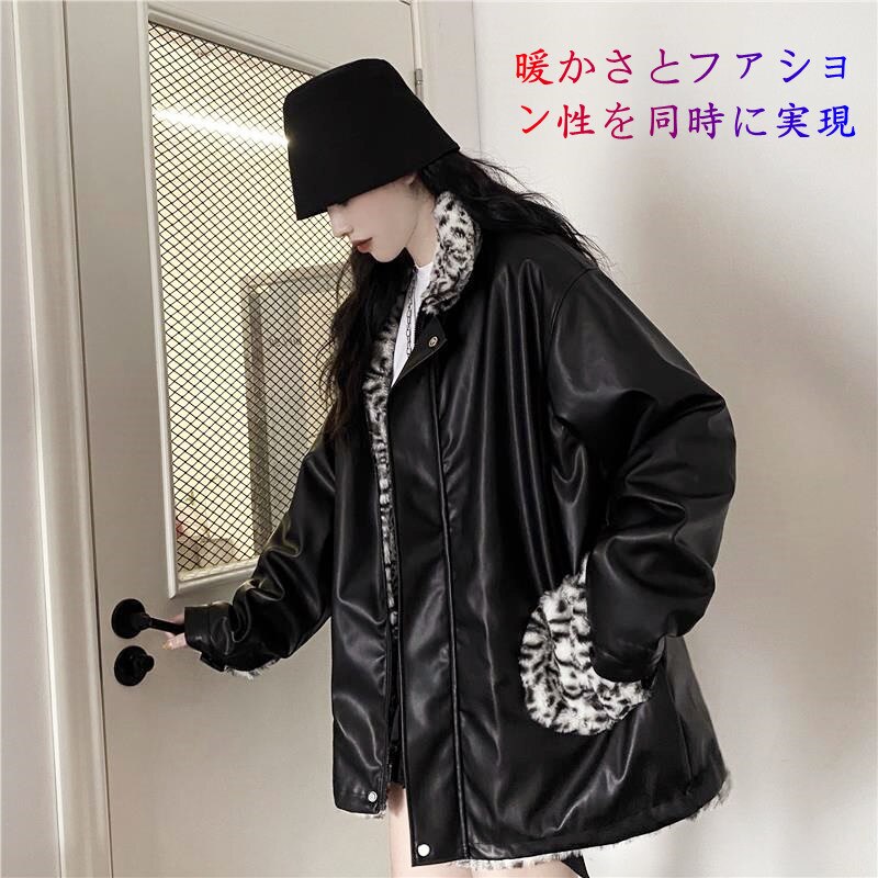 ヒョウ柄 ライダース PUレザー 防風 レザージャケットボア フリース ボア その他 アウター