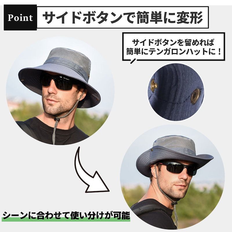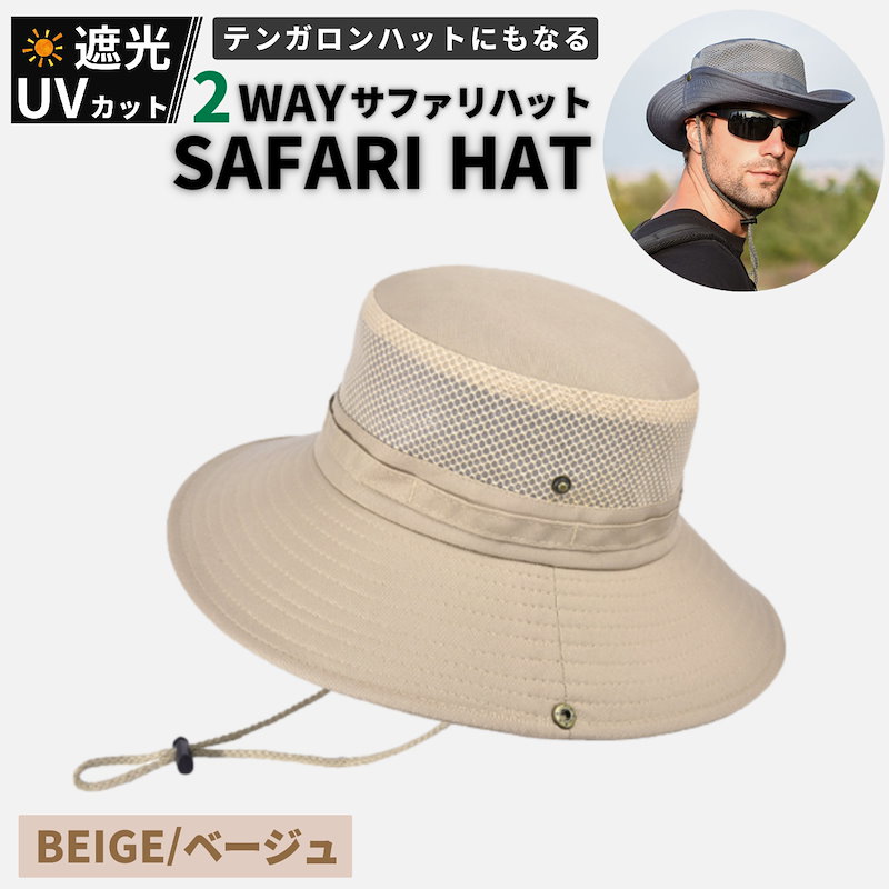サファリハット 帽子 日焼け防止 日よけ メンズ 首 紫外線 UVカット 日除け おしゃれ つば広帽子 ハット 2WAY テンガロンハット 日よけ帽子 夏 UV 冬 アウトドア