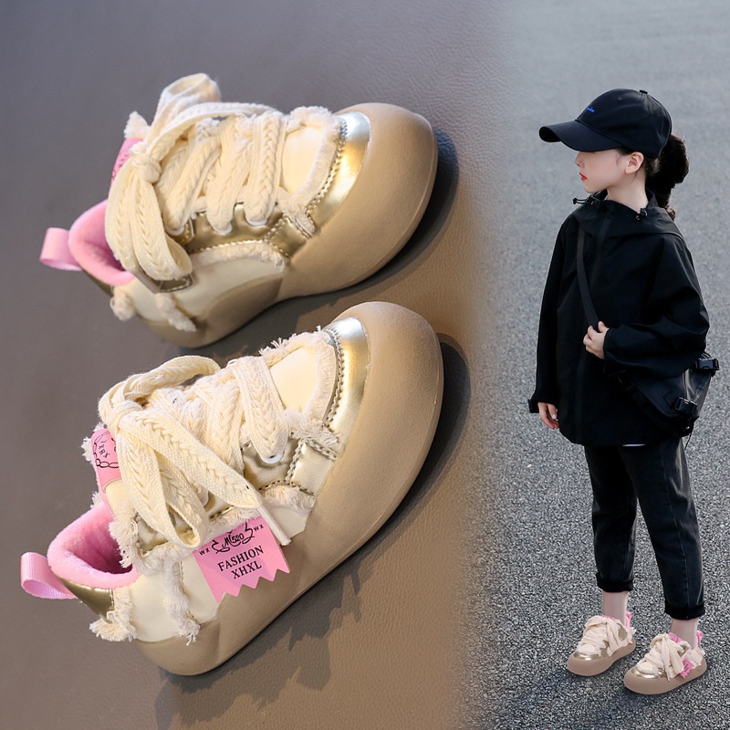 綿靴女性2024冬加絨保温軟底カジュアル板靴女の子厚底増高マドレーヌ白靴 カジュアル靴