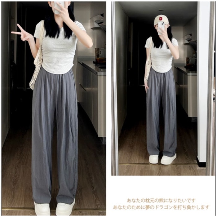 セットアップ春服トップスイージーワイドパンツ韓国ファッションワイドパンツレディース無地ゆったりビッグサイズリラックスカジュアルファッション