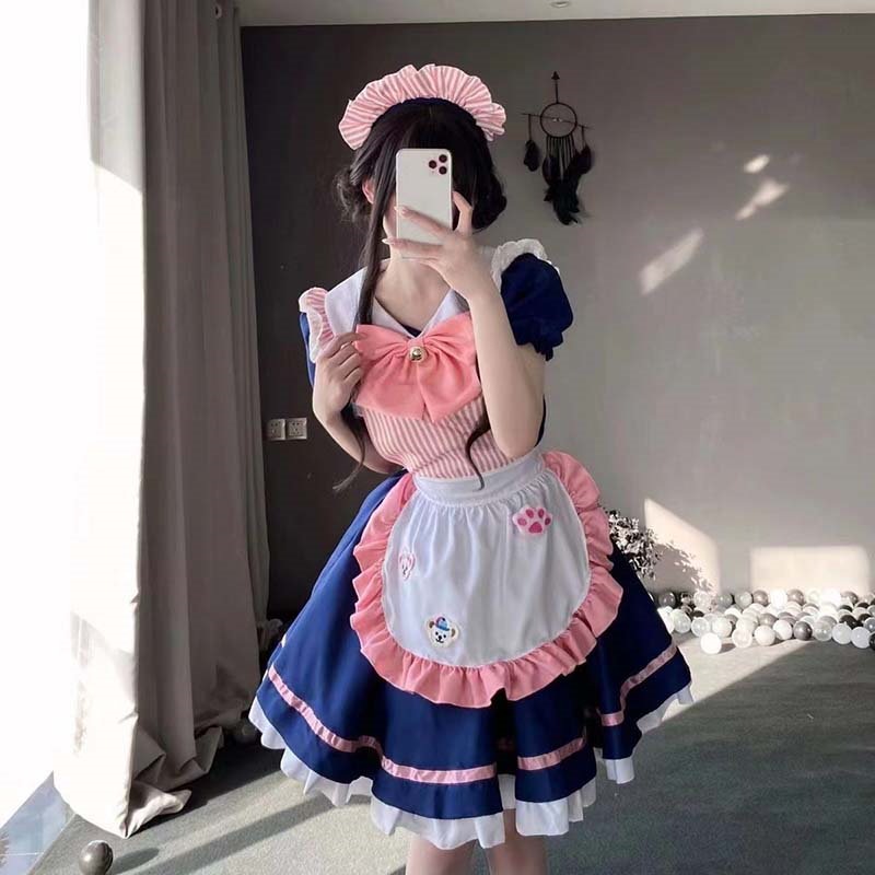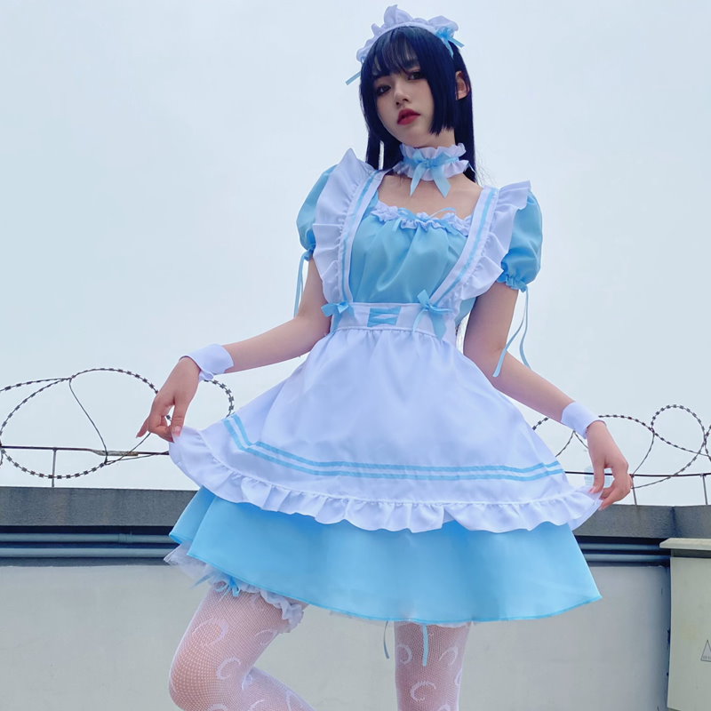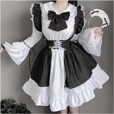 メイド服 コスプレ ワンピース ロリータ 仮装 衣装 半袖 アリス風 コスチューム 制服 レディース メンズ セット 文化祭 学園祭 可愛い メイドカフェー 女装 仮装