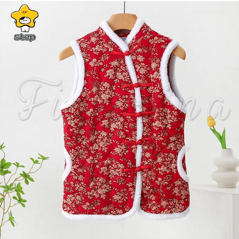 中綿ベスト レディース インナーベスト 花柄 中綿 ライトダウン ファーベスト ショート レディースベスト ダウン風ベスト レディース ジレ