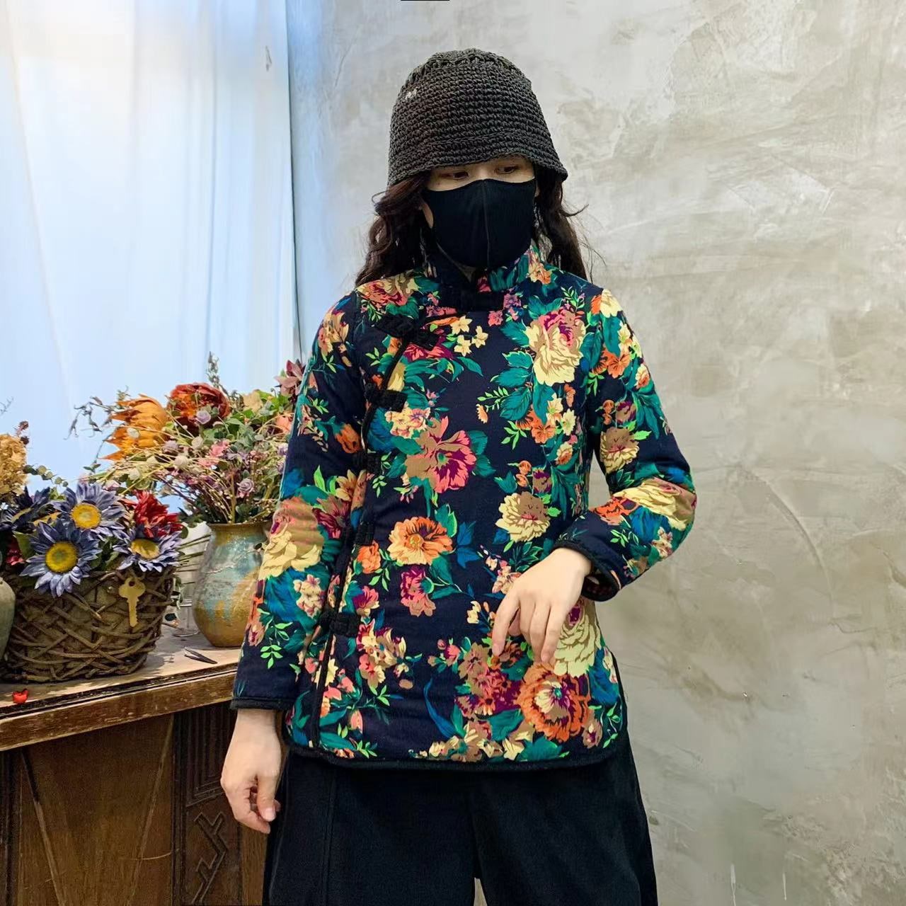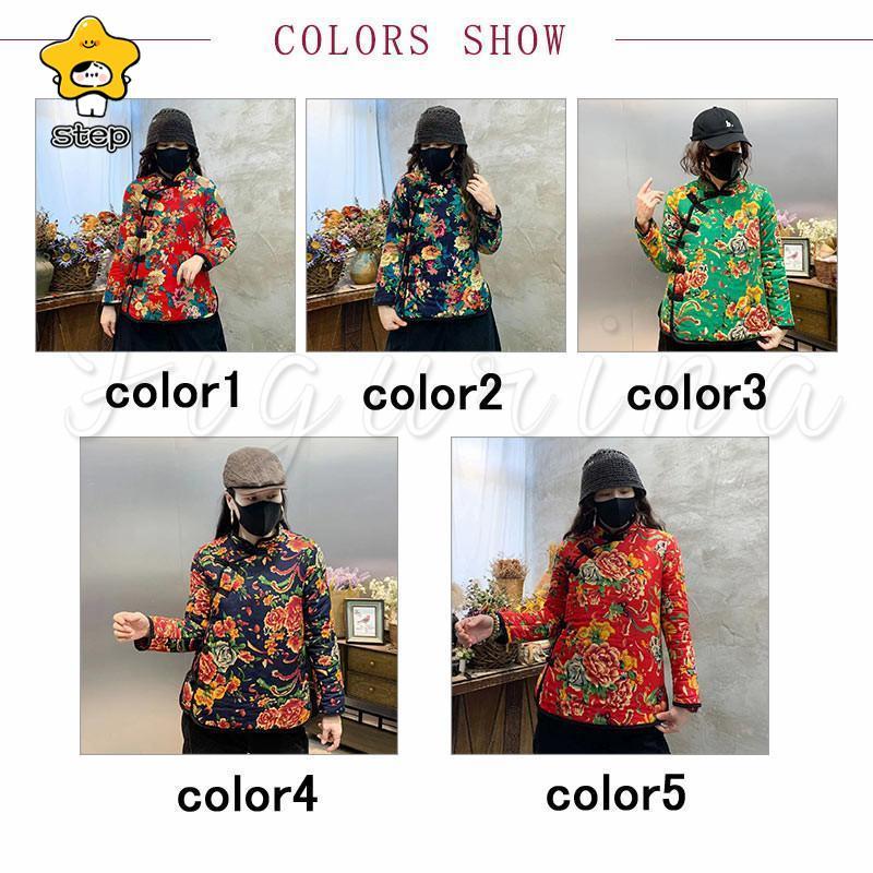チャイナボタン 中綿コート コート 綿入り ショート丈 レディース アウター 厚手コート 花柄 ジャケット 立ち襟 刺繍 ショート丈 その他 アウター