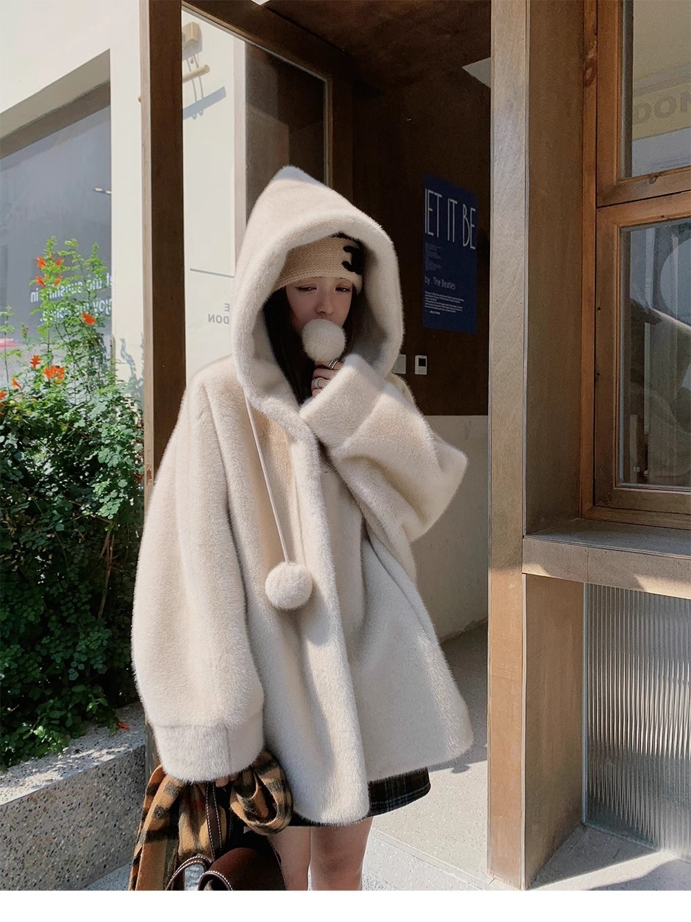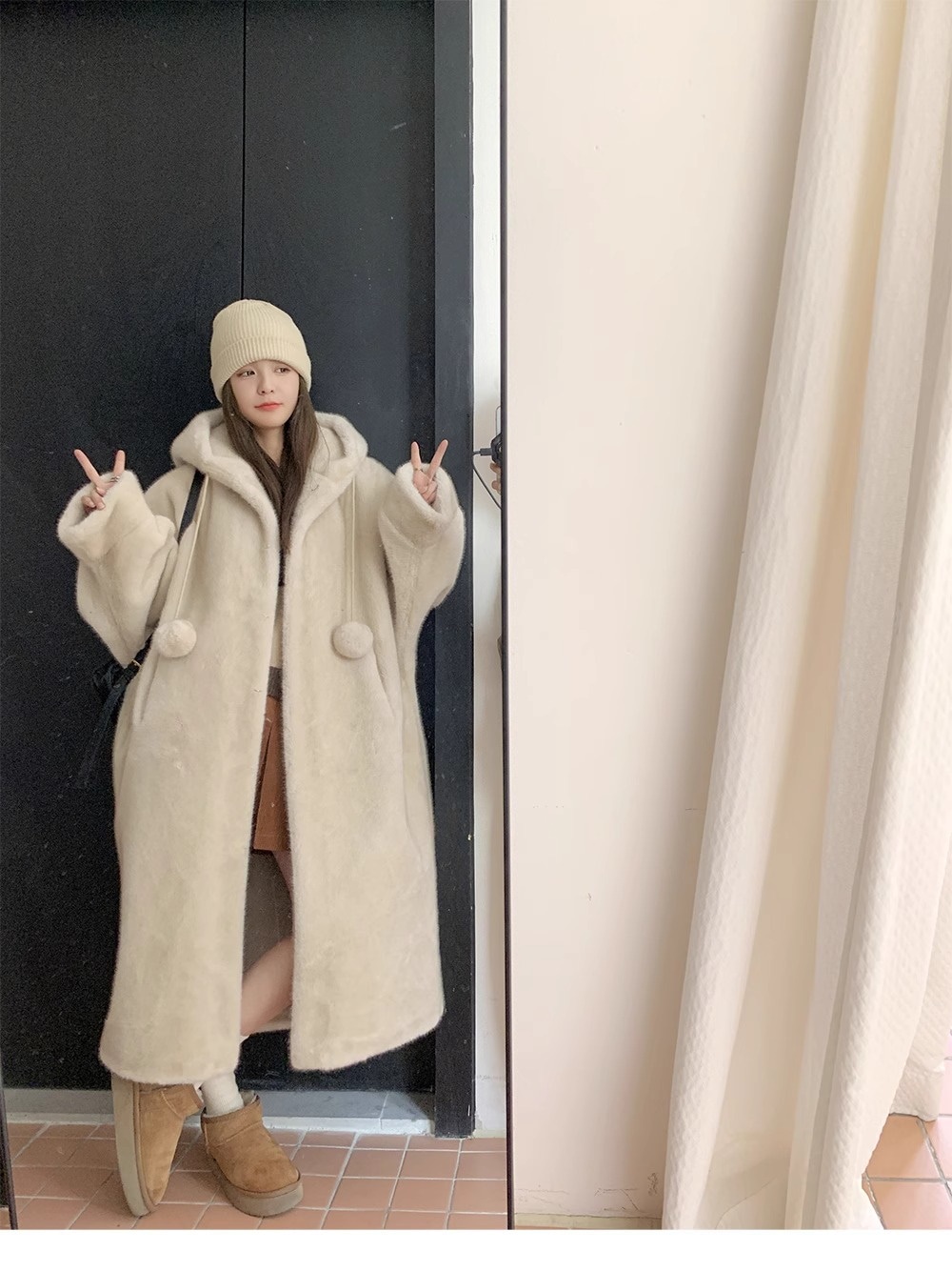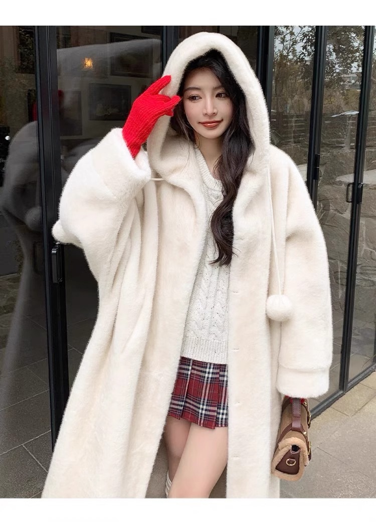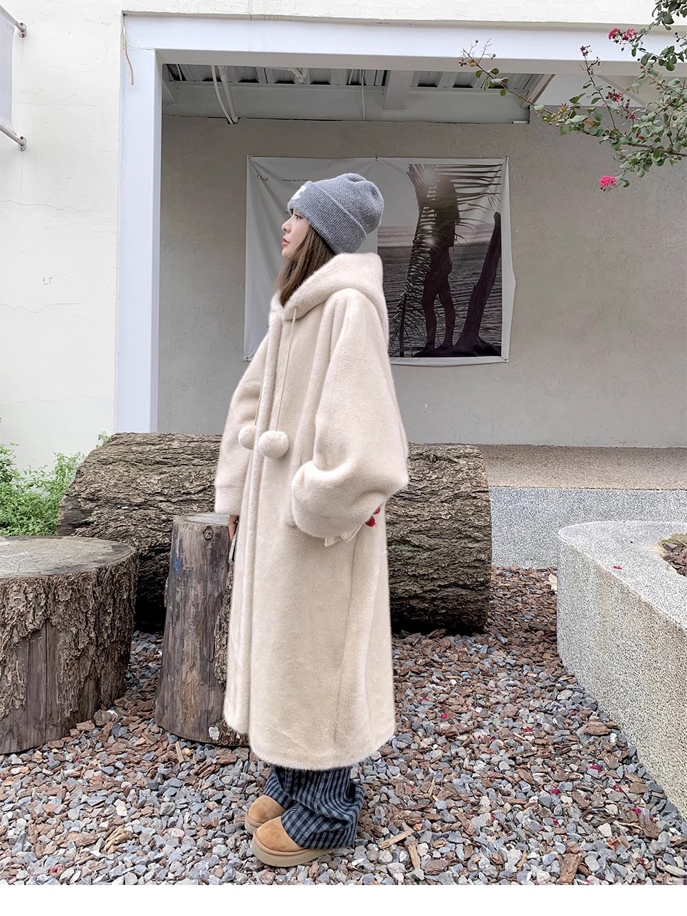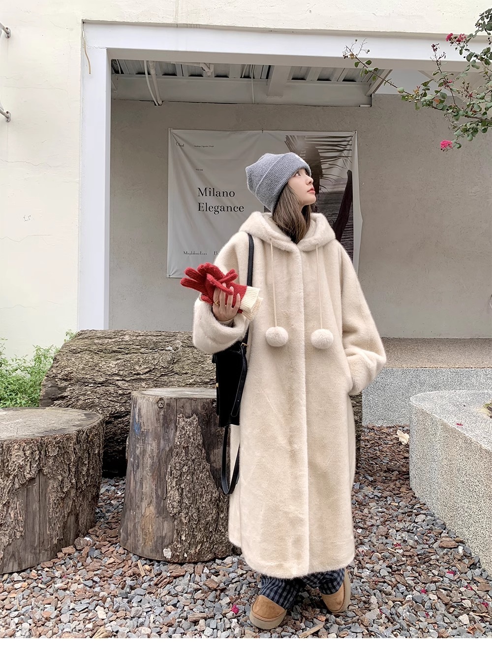 ボリュームファーコート フェイクファーもふもふ暖かいボリュームファーコート フード付き ボンボン フェイクファー 秋冬服 カジュアル 暖かい フェイクファーレディース ロング丈 ショート丈