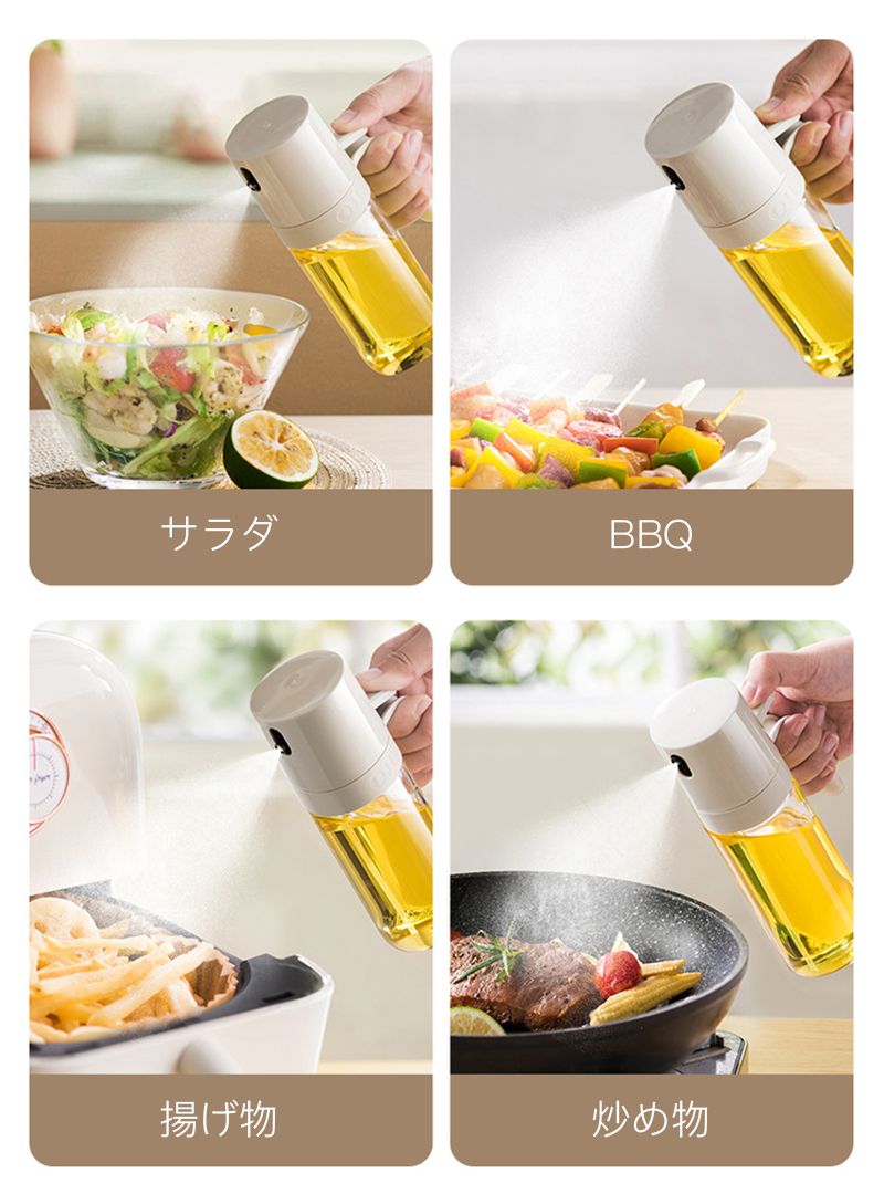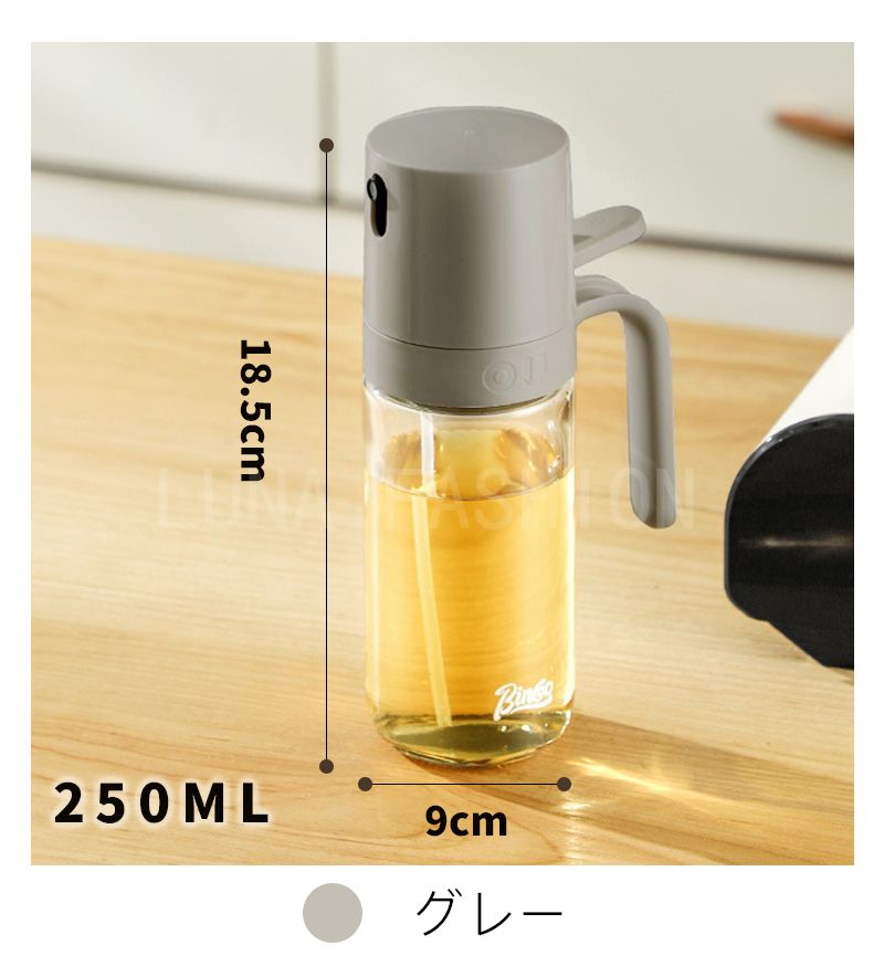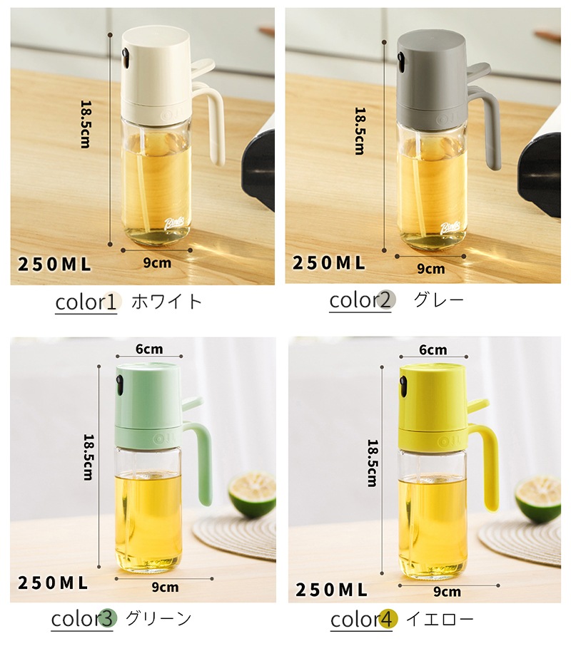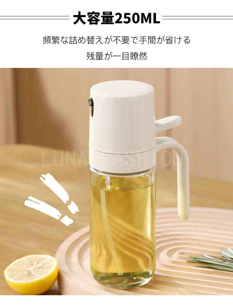 オイルスプレーボトル 霧吹き ガラス オイルスプレー 透明 加圧式 多機能 食卓用 家庭用 調理用 料理用 250ml 酢 醤油入れ 液だれしない 油さし オイル用 油用 詰め替え おしゃれ キャンプ