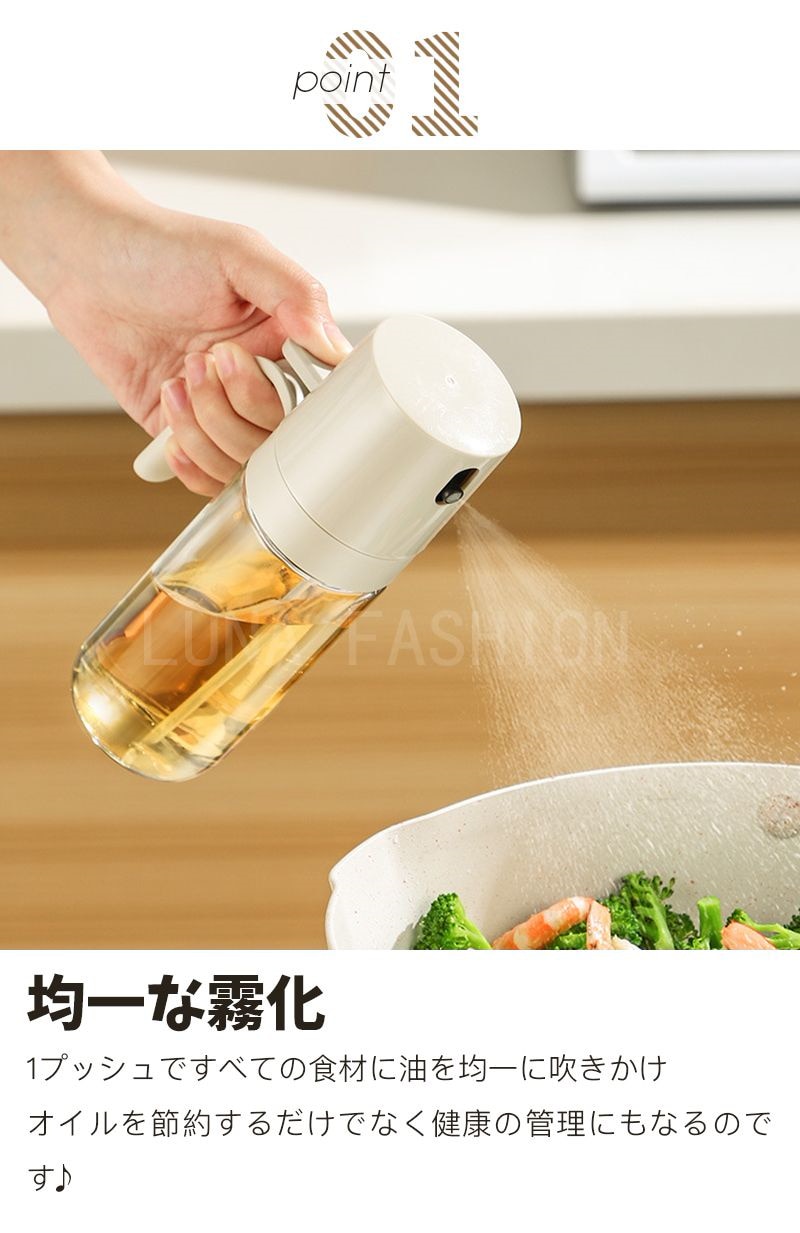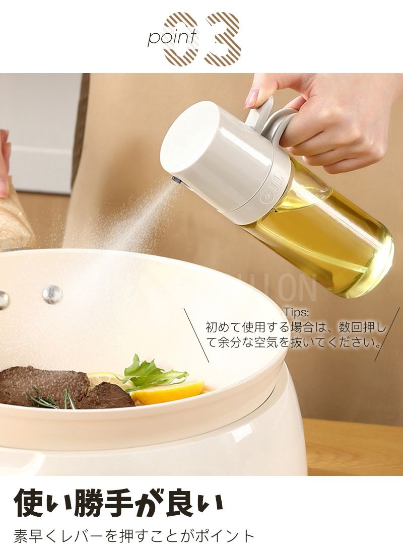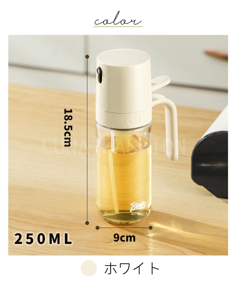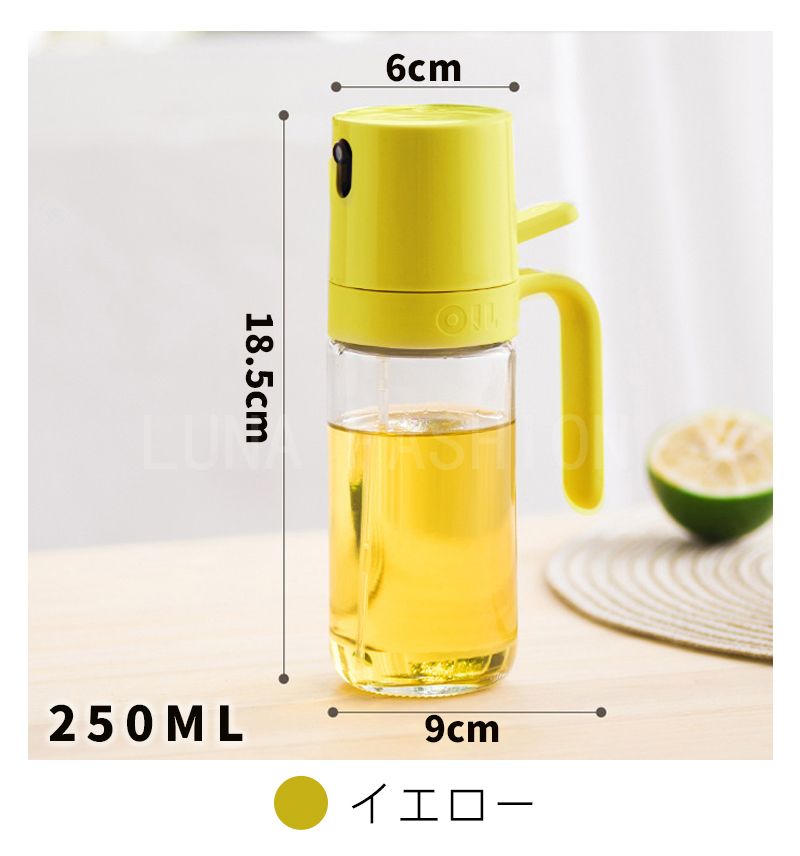 オイルスプレーボトル 霧吹き ガラス オイルスプレー 透明 加圧式 多機能 食卓用 家庭用 調理用 料理用 250ml 酢 醤油入れ 液だれしない 油さし オイル用 油用 詰め替え おしゃれ キャンプ