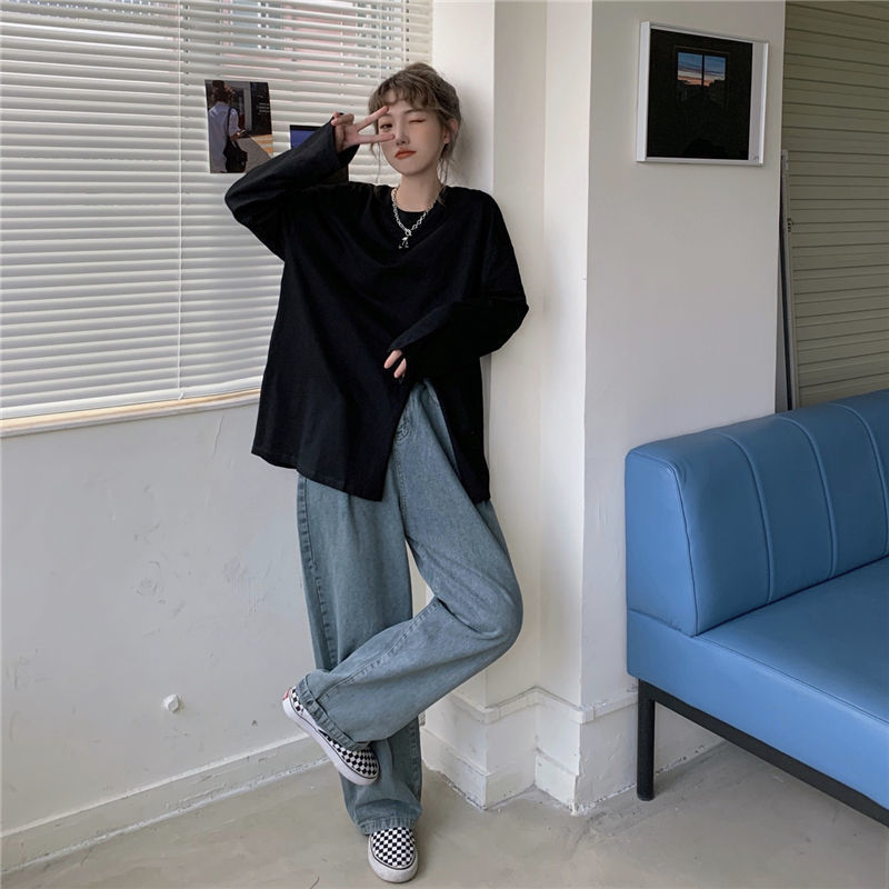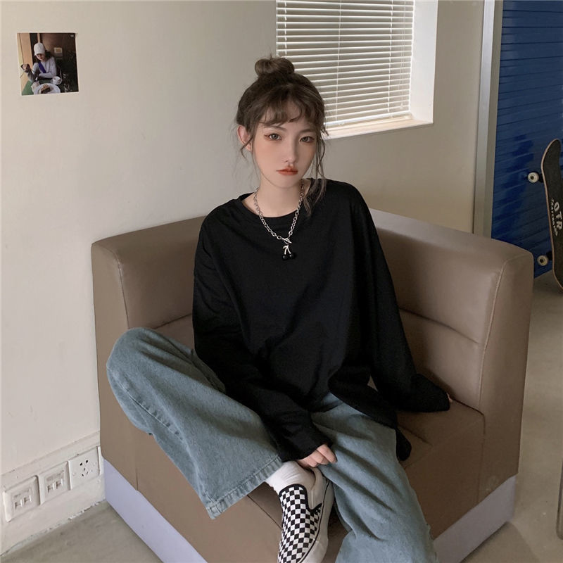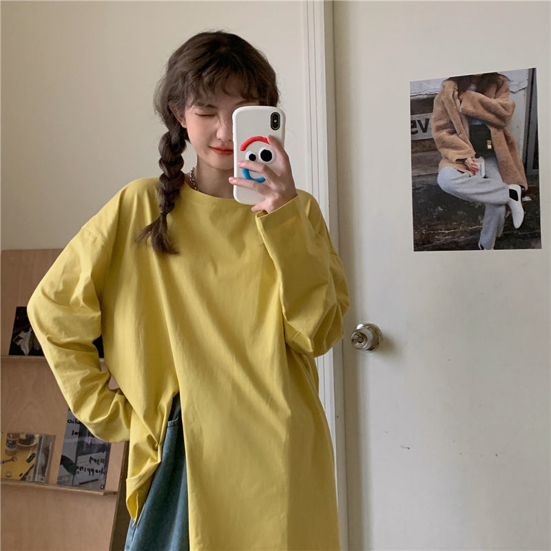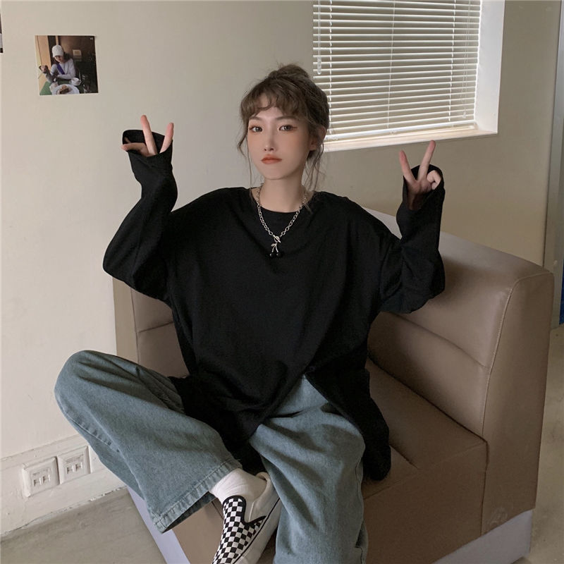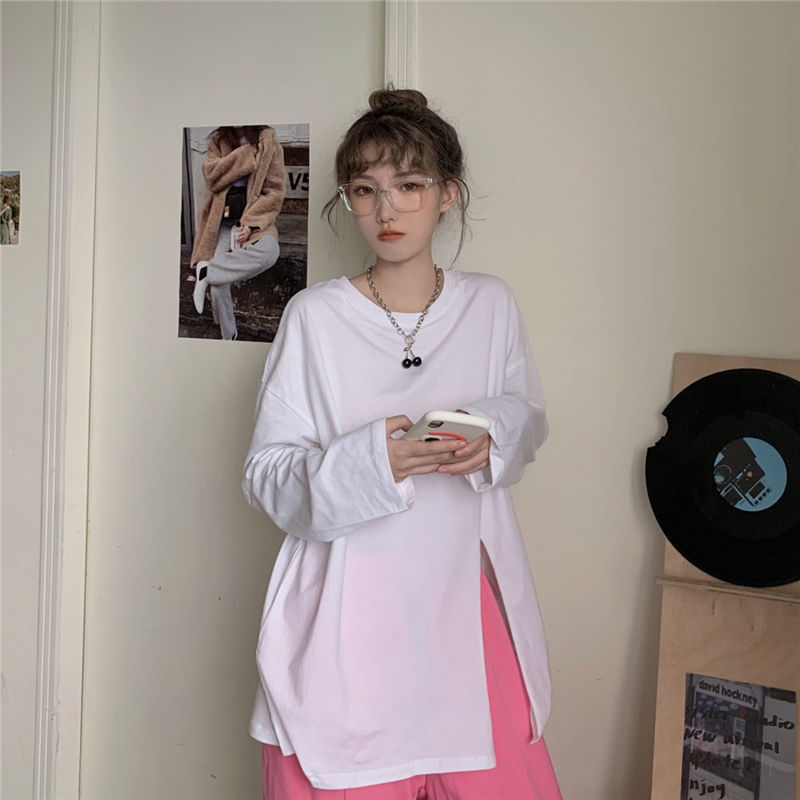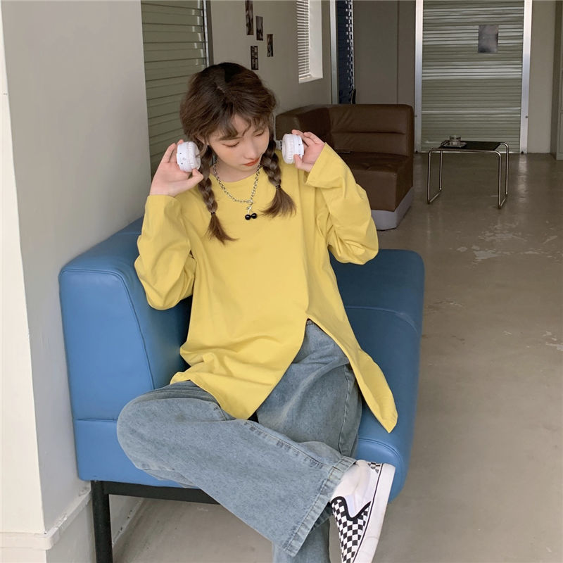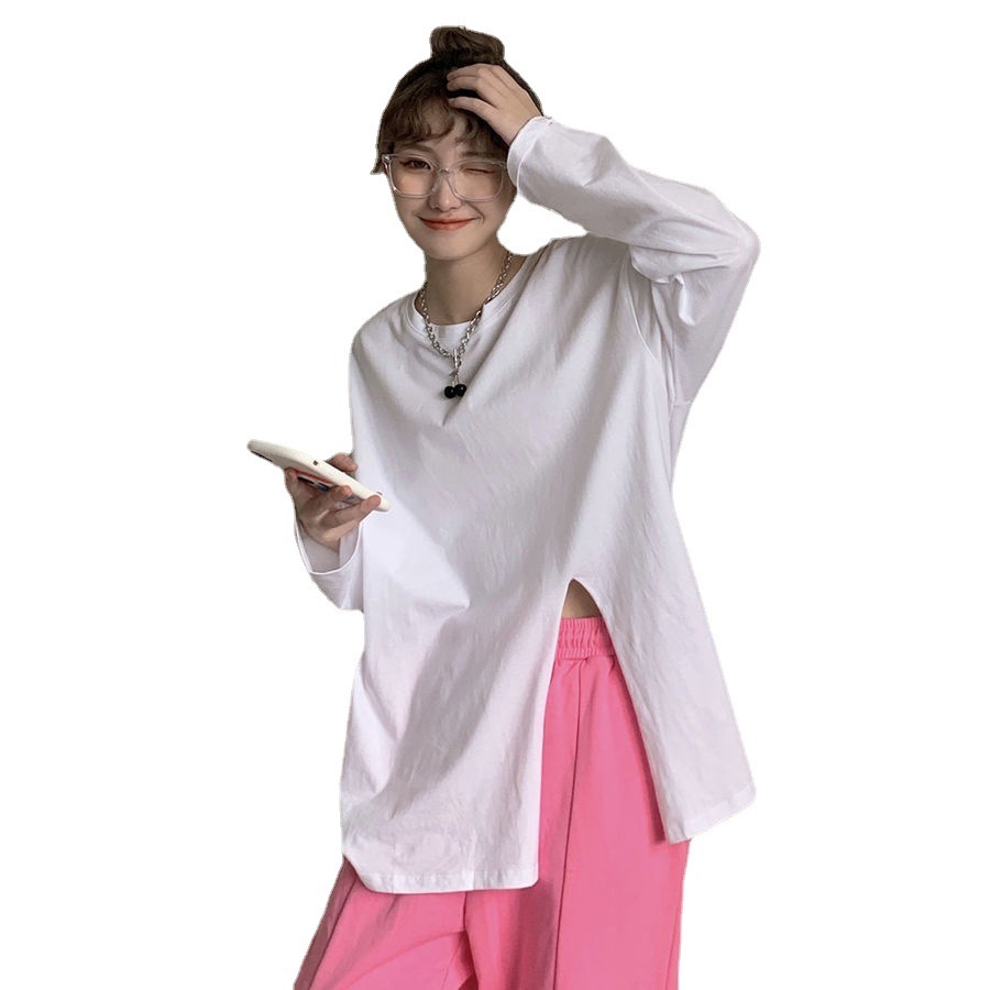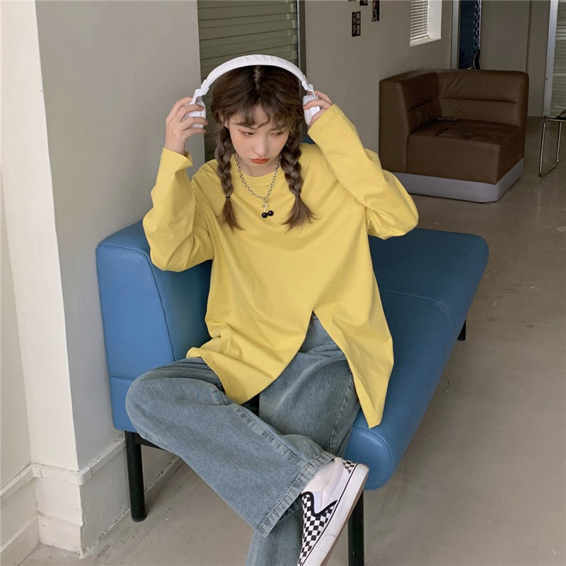 设计感网红同款开叉长袖T恤卫衣女装春秋季宽松上衣ins潮 Tシャツ カットソー