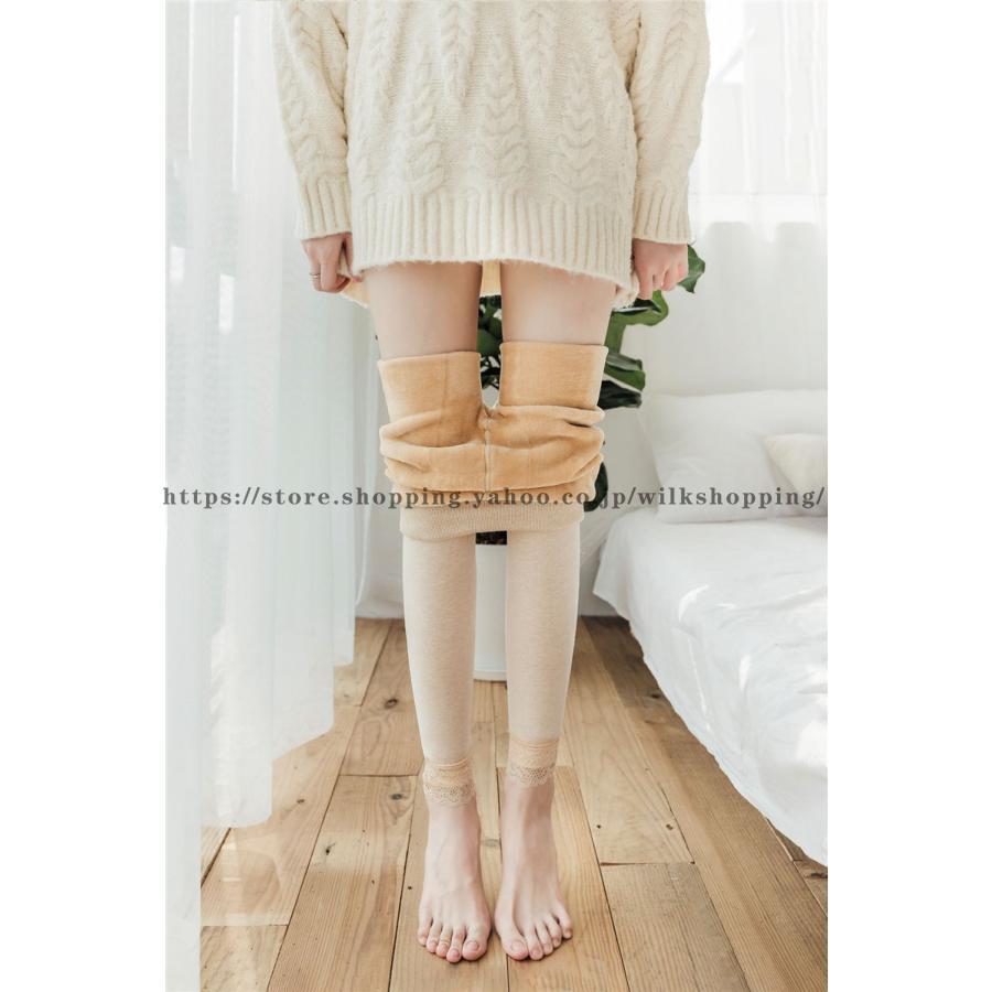 レギンス レディース 裏起毛タイツ 裏ボア ストレッチ 着圧 レース 極暖レギンス 防寒 暖かい 保温 あったか ウエストゴム インナー 秋冬