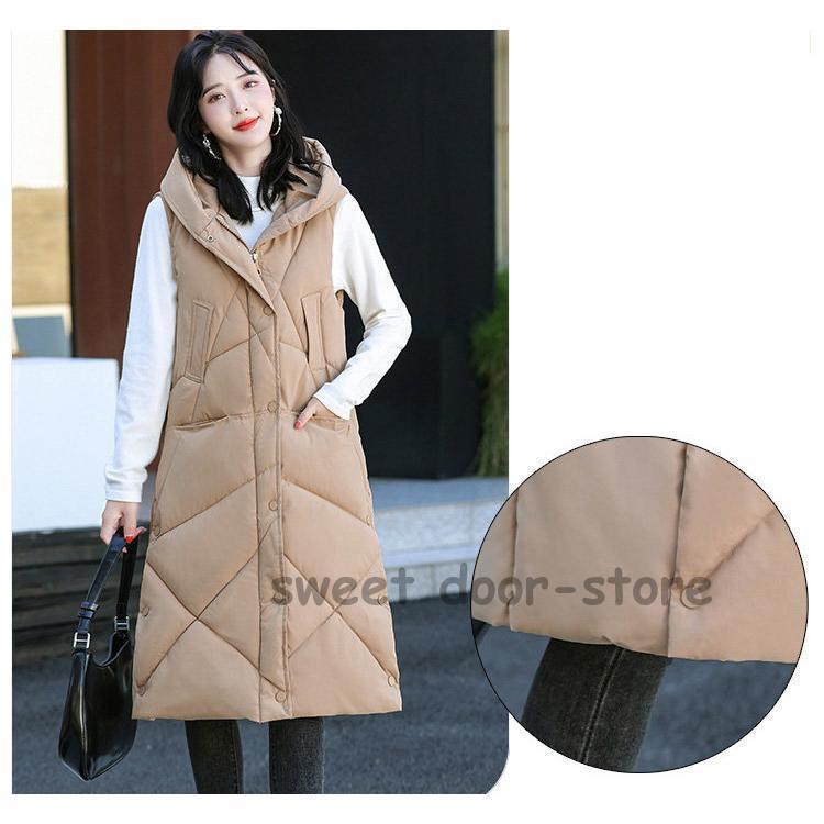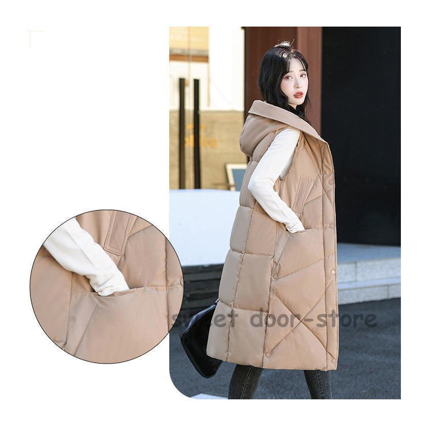 ベスト レディース 中綿ベスト ロングベスト ダウンベスト トップス フード付き 前開き 暖かい 防寒 秋冬 アウター 軽量 着痩せ ベスト