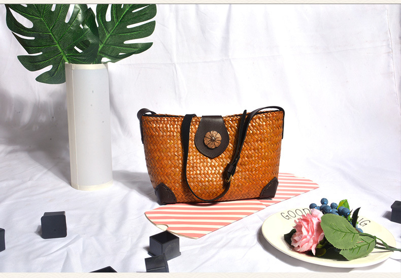 2024新潮ネット赤麦わら編みバッグエスニック風ハンドメイドニットシングルショルダー斜め掛けレディースレトロストローバッグ ハンドバッグ