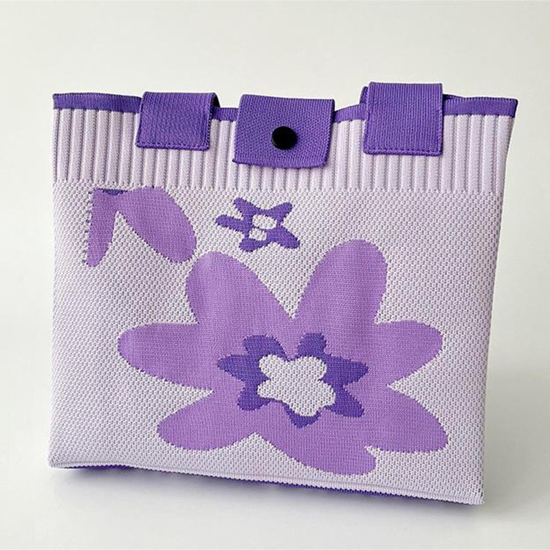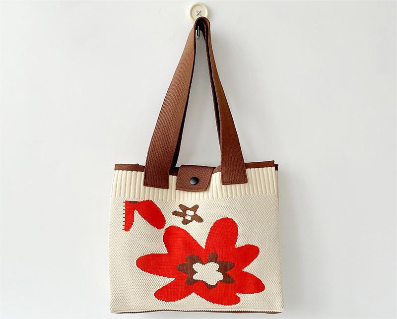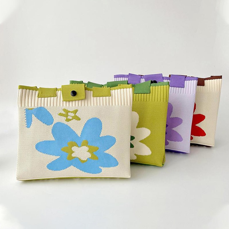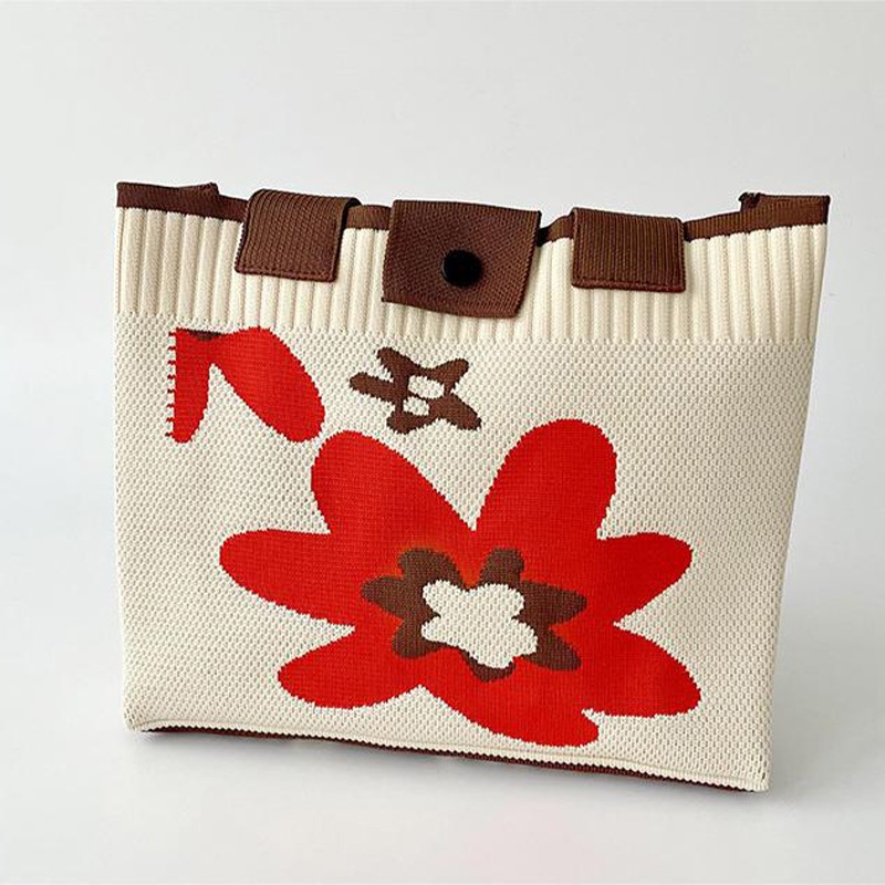 花ニットショルダーバッグ春秋夏大容量手持ちトートバッグアウト便利な収納バッグ ショルダーバッグ