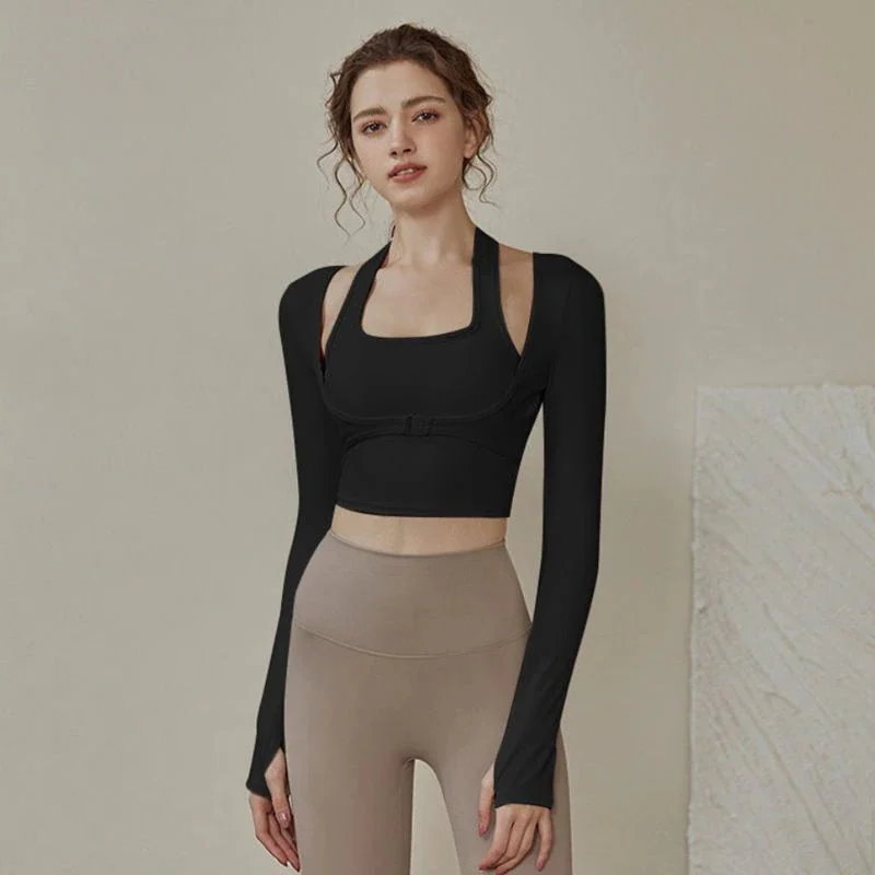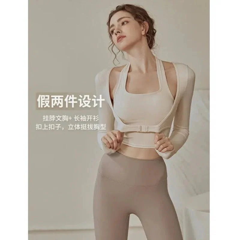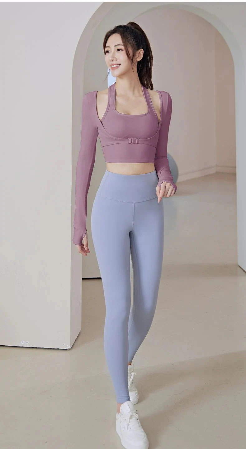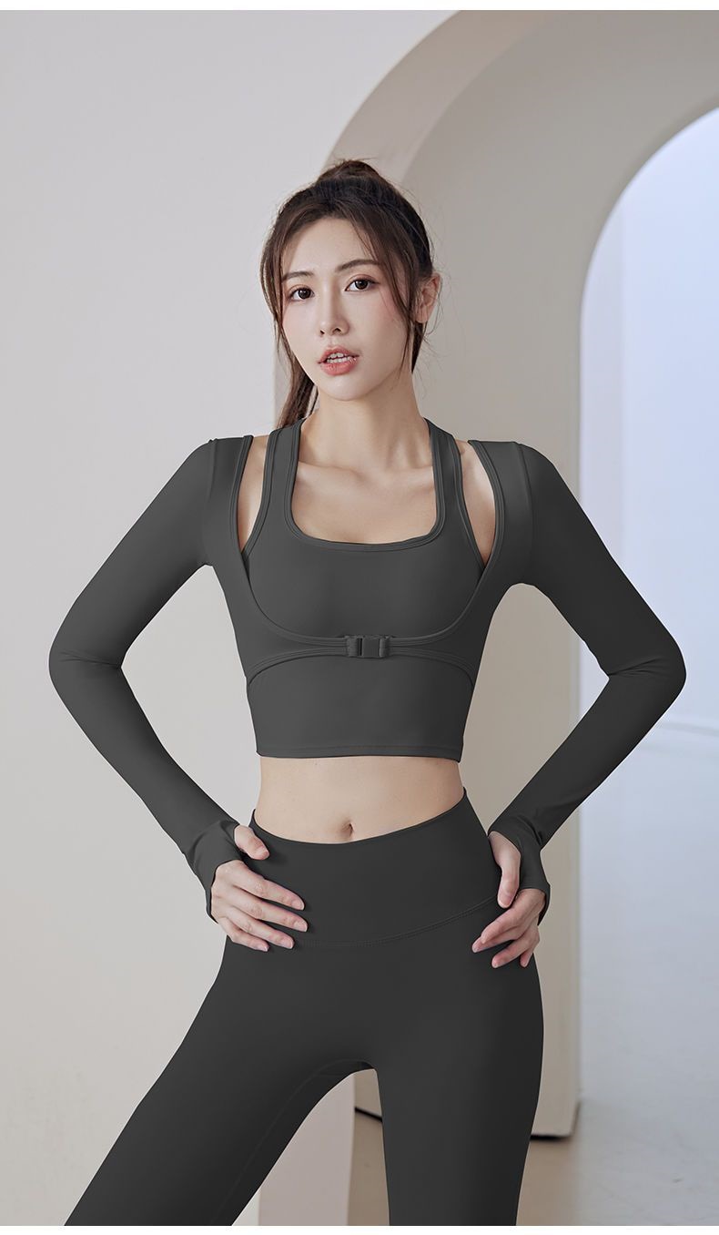 ヨガパンツ ヨガウェア 胸当て付き 速乾ジャージ フィットネスウェア 長袖 ランニング セット