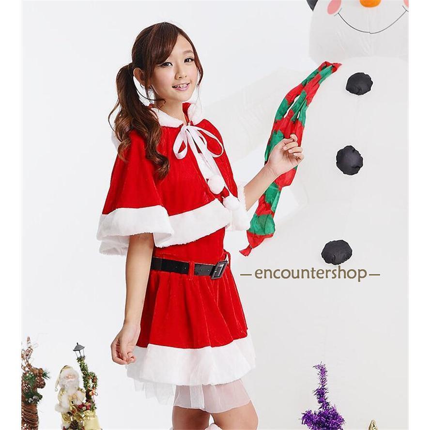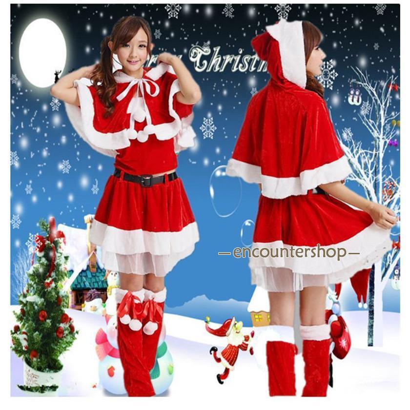 サンタクロース コスプレ クリスマス コスチューム 4点セット 冬用 ワンピース ポンチョ 仮装 衣装 大人用 変身 パーティー イベント ギフト