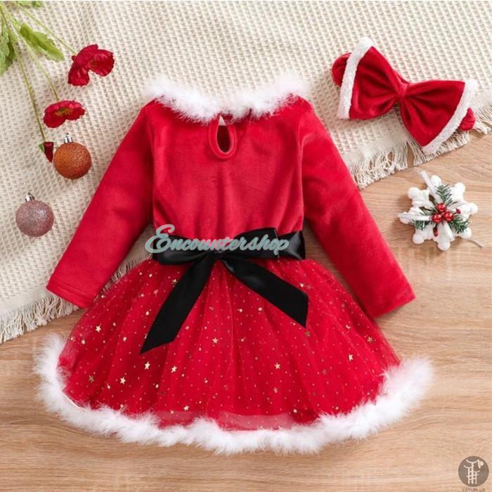 子供 サンタドレス ヘアバンド付き 2点セット サンタ衣装 クリスマス衣装 ファー 女の子 ワンピース サンタクロース キッズ クリスマス