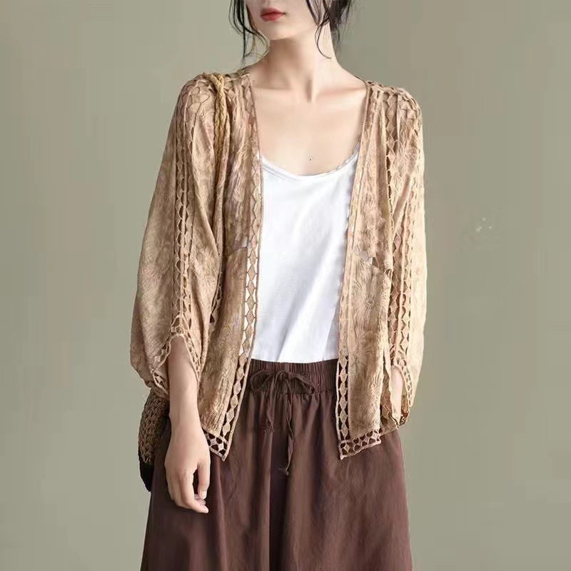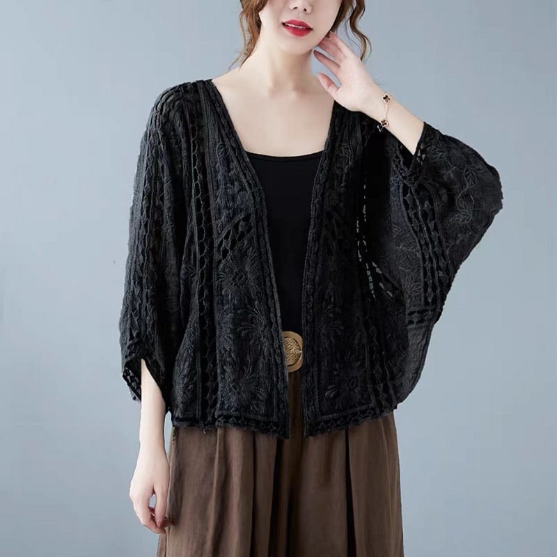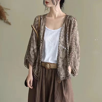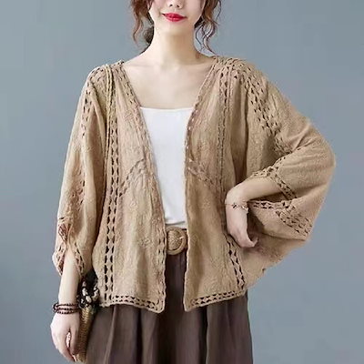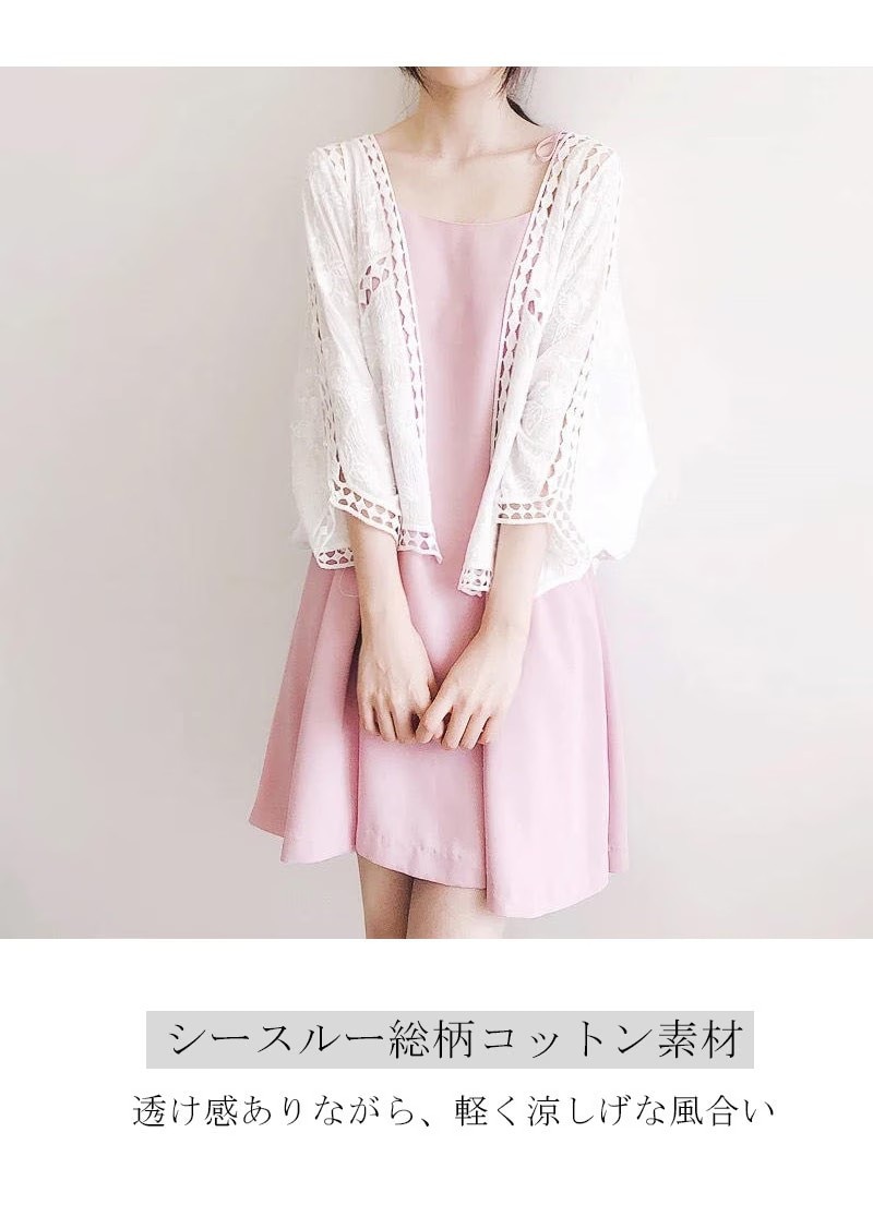 カーディガン レディース レース 夏 UVカット パーカー ドルマン 体型カバー 羽織り 透ける 綿 ドロップショルダー ボレロ サマーカーディガン