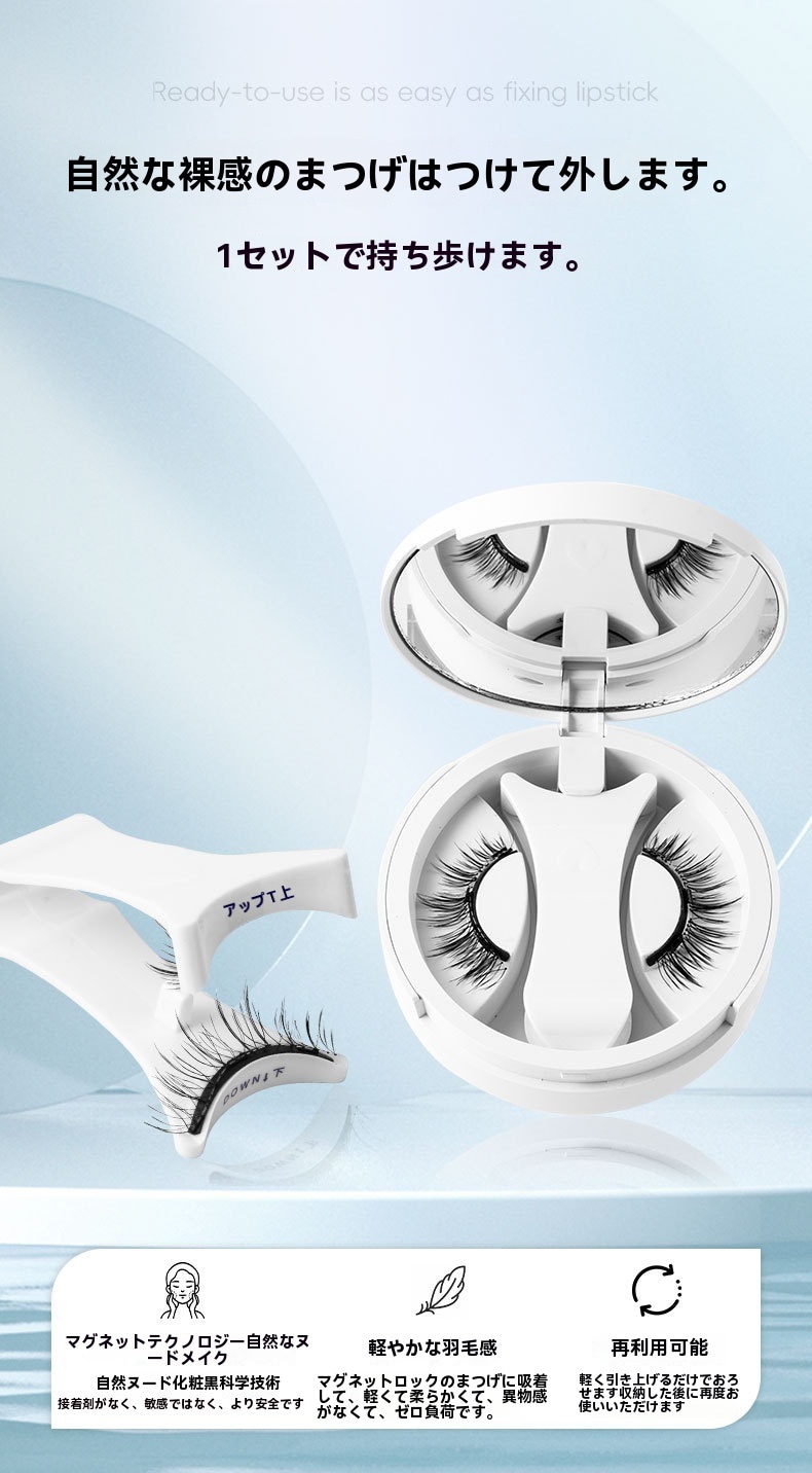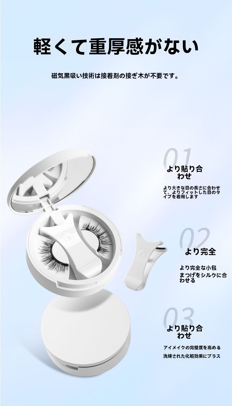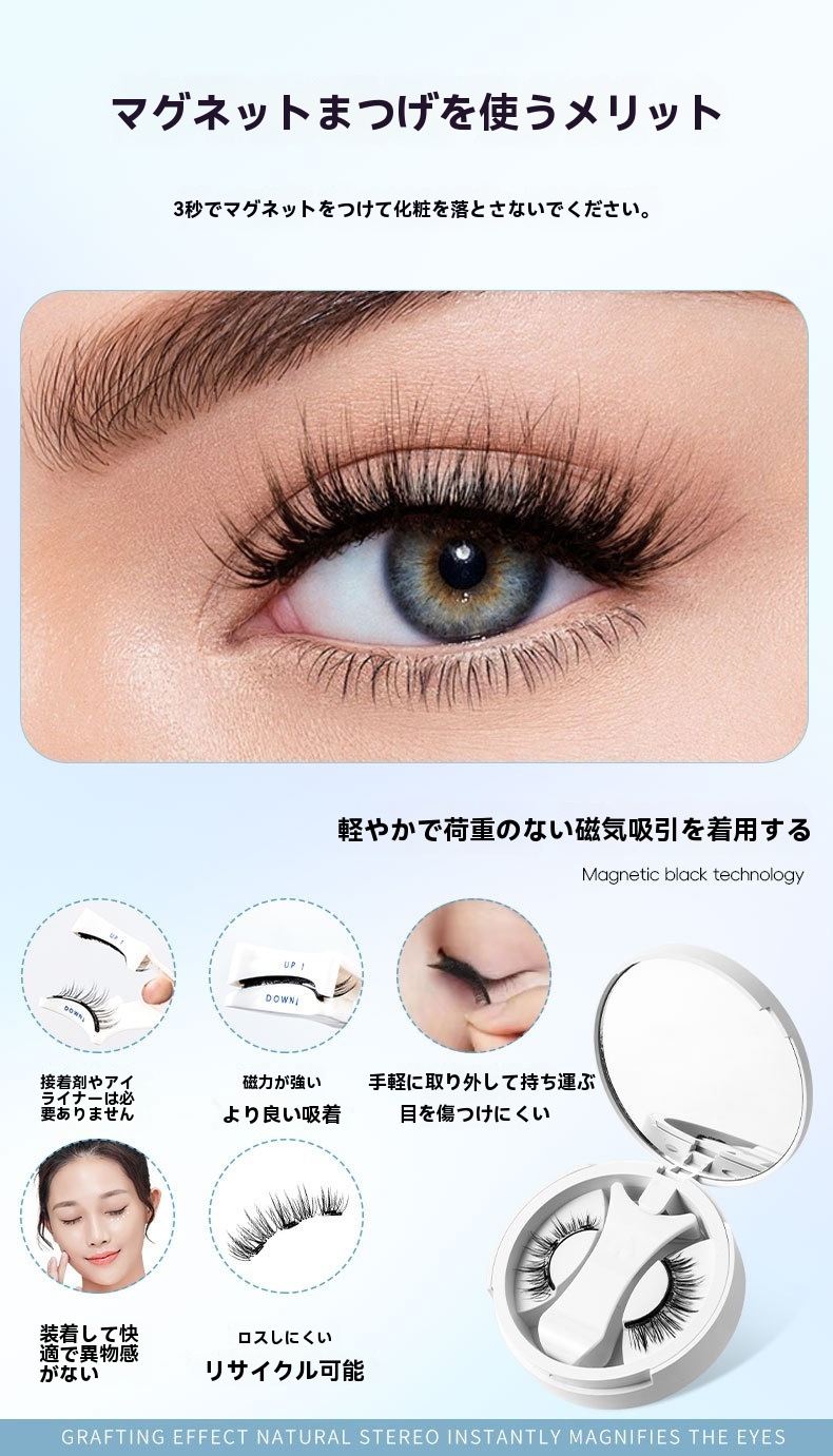 磁気つけまつ毛 マグネット式 3D 接着剤不要 繰り返し使える 6タイプ 鏡 ビューラー 収納ケース付き 防水 ナチュラル ボリューム