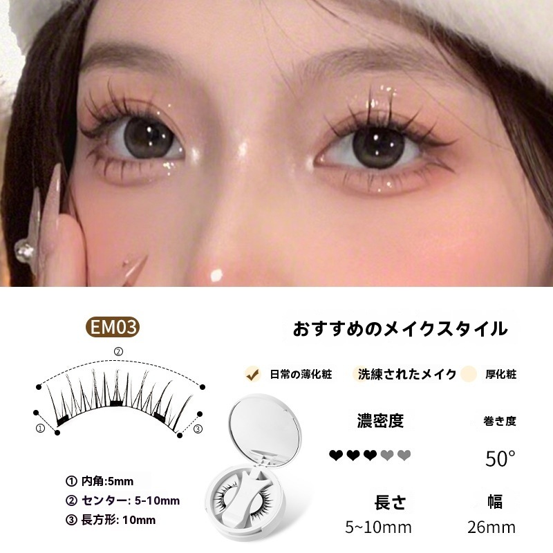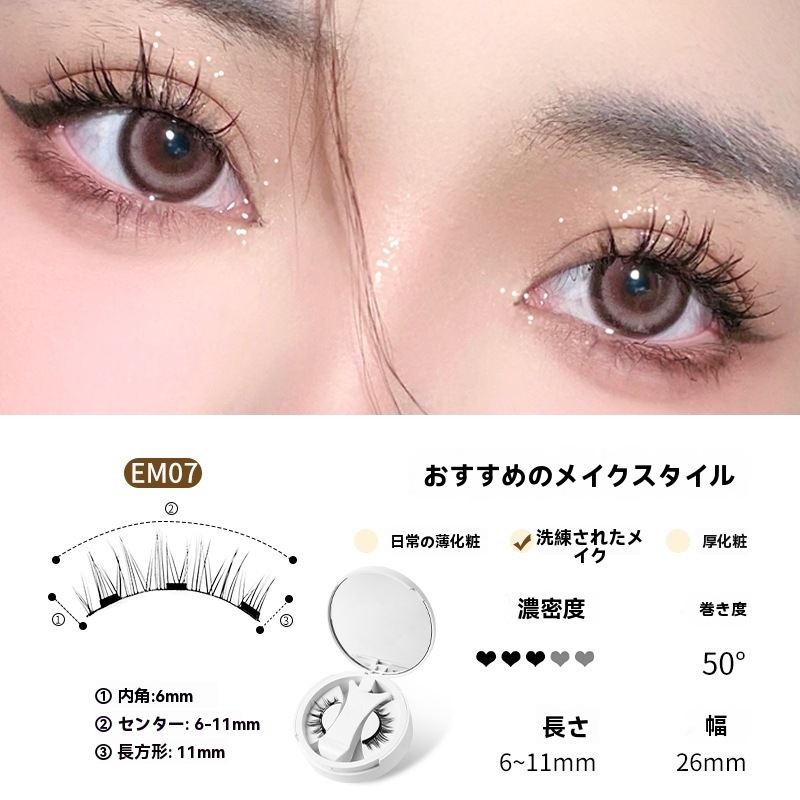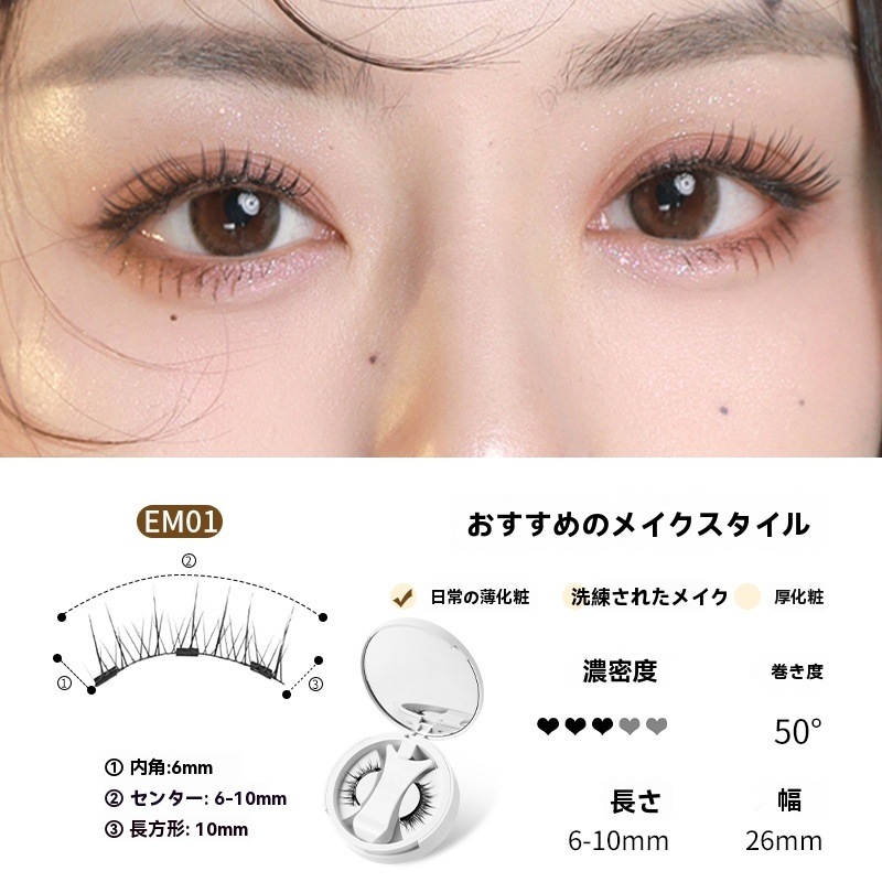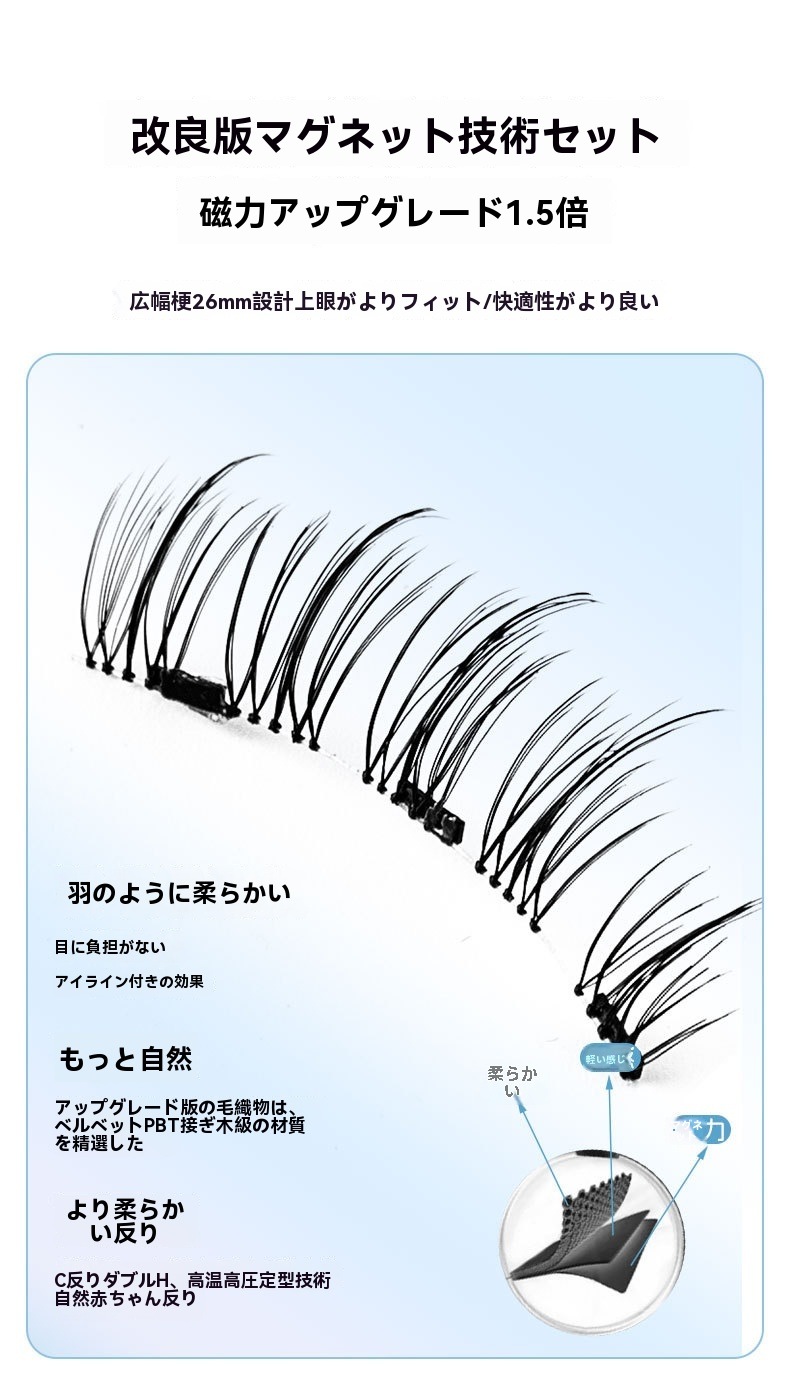磁気つけまつ毛 マグネット式 3D 接着剤不要 繰り返し使える 6タイプ 鏡 ビューラー 収納ケース付き 防水 ナチュラル ボリューム